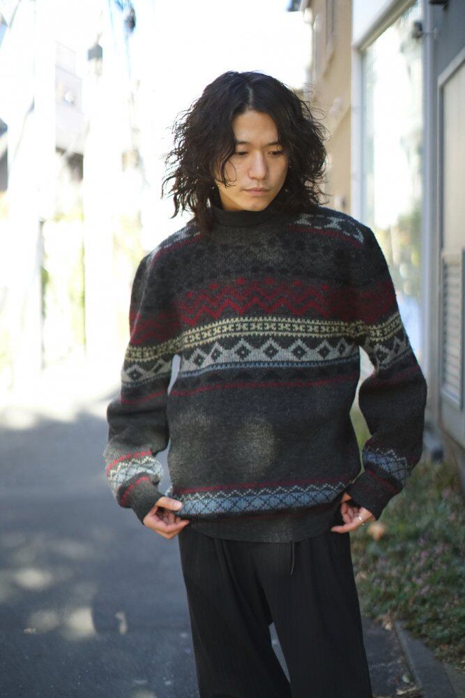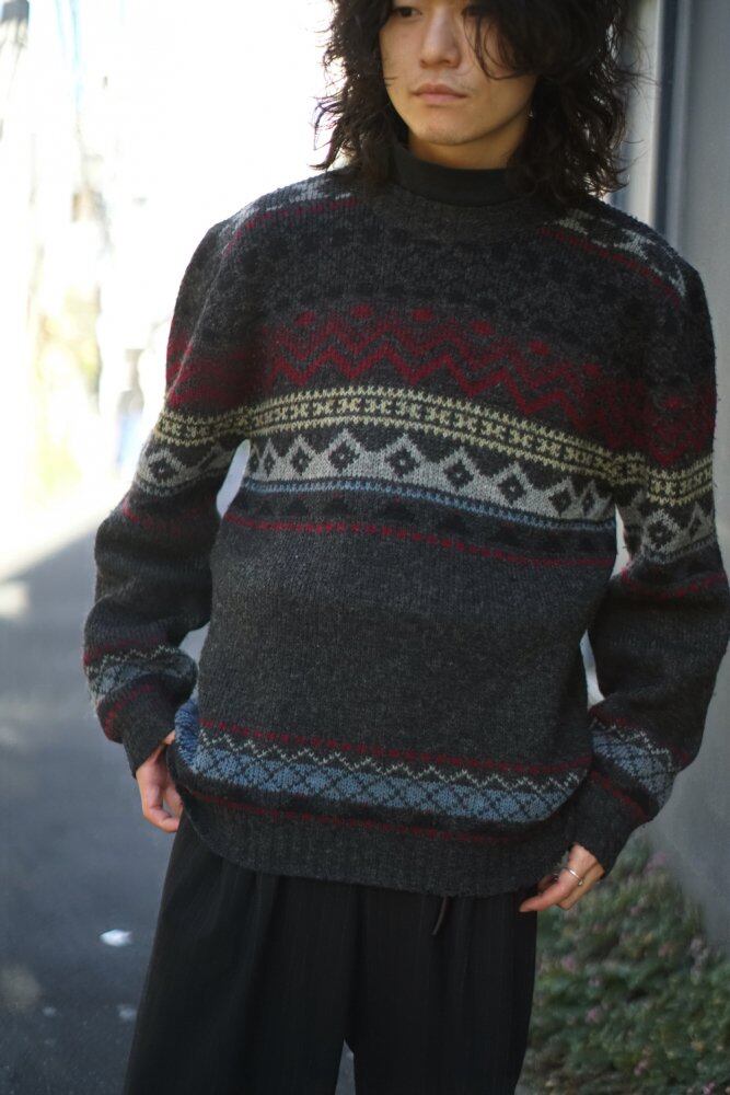 Nordic pattern sweater around 1960s, 70s A chic impression with a very calm Nordic pattern on the charcoal body The size notation is XL, but it is a silhouette balance Shetland wool fabric that is not too big and has a moderate amount of space. , It is very light and has good heat retention with less tingling sensation peculiar to wool.