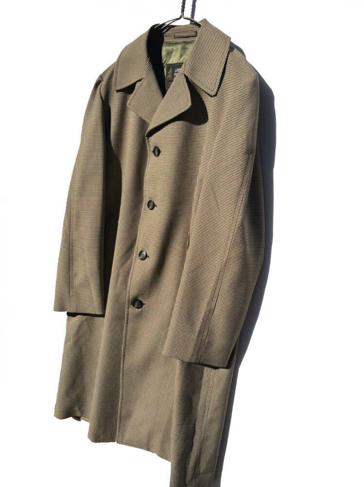 Founded in 1923, the brand is synonymous with coats. This is a single coat with a dignified houndstooth pattern. The front side is set in and the back side is raglan, and the split raglan sleeve size is 42 LONG. There is not much trouble in wearing one piece that can be worn, but please forgive me because there are some stains on the left shoulder part. The material is made of durable polyester.