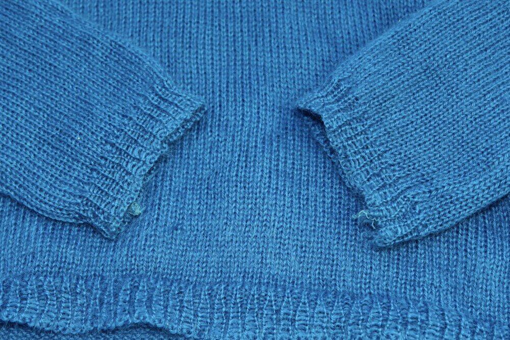 A mohair-blended knit that is very valuable in recent years before the 1960s. This is made by the well-established Jantzen, and although the mixing ratio is unknown, it is soft and stress-free. The neon blue color that jumps into your eyes is an elegant and accentuated shade. A tight silhouette that draws a beautiful line with a V-neck line that is not too deep. There is some damage to the ribs, but there is no feeling of pilling on the hair and it is in a good condition subjectively. Since it is an old product, it rarely deteriorates over time. Please check the photo and understand the characteristics of Vintage before purchasing.