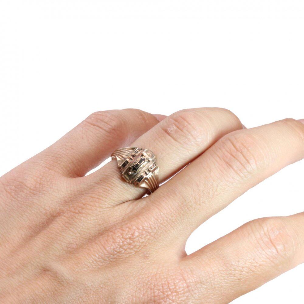 A 1945 vintage college ring. A simple emblem top that does not contain stones, and a design that makes the gold texture easier to understand and can be worn for many years without getting tired. Engraved with 10kt gold. Please check the condition in the photo and purchase after acknowledging the characteristics of vinteg.
