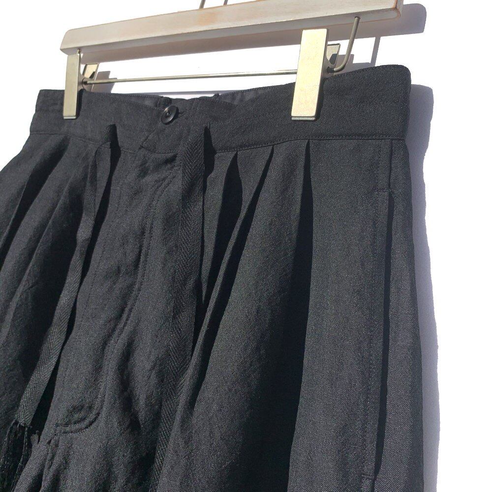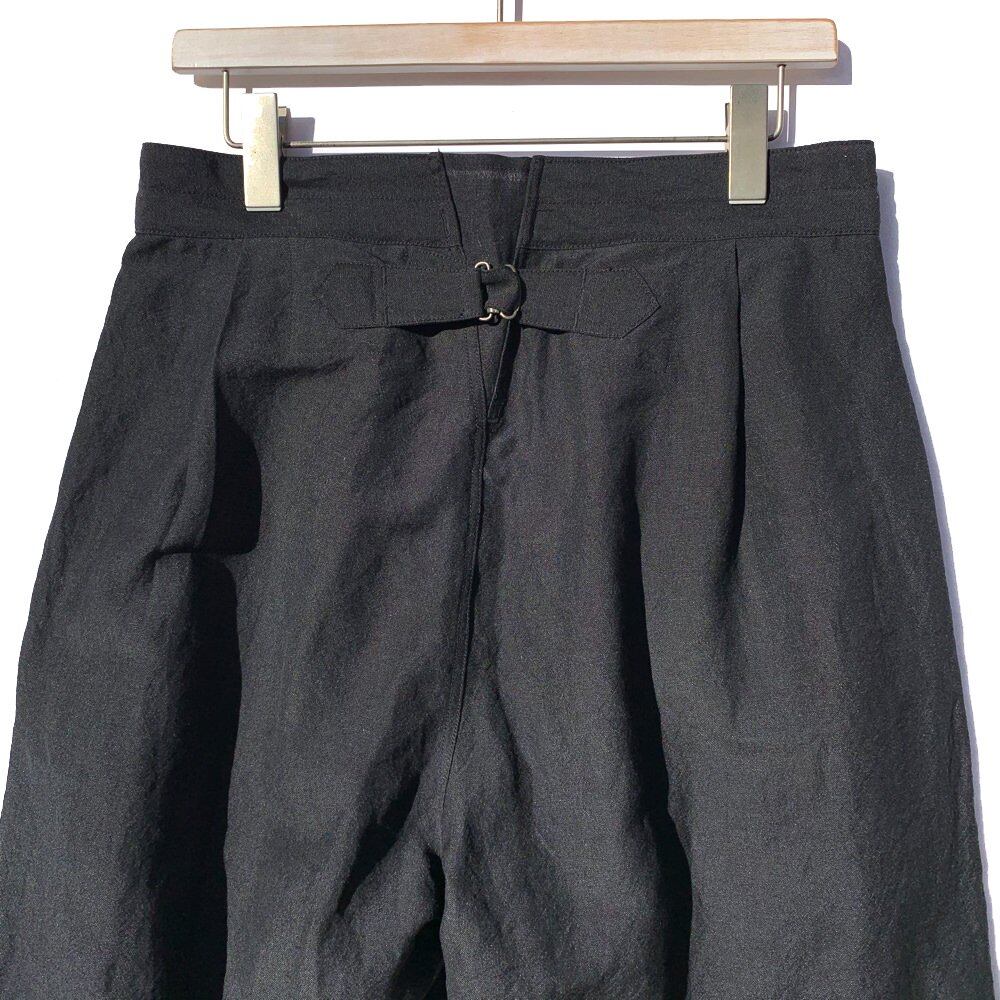 [ALVISTA] 3rd issue Vol 1. Created with the motif of pants used by a unit with a unique style called Zouave soldiers of the French Foreign Legion (Foren Legion). It features a unique balloon form with a voluminous overall shape squeezed with a tuck at the waist and hem. A cinch back specification with a gusset that can be seen in old French workwear, etc., which is made around the waist to reduce the slack when squeezed. Furthermore, a wide range of size adjustments are possible by passing the waist cord. It is also possible to change the number of buttons on the hem to suit your shoes and style. {Wool / Linen High Density Weather} A weather material that uses worsted wool No. 60 twin yarn for the warp and linen No. 40 single yarn for the weft, and is driven at high density. A fabric that is more repulsive and swelling than the general TW tropical fabric as summer wool, and has a more natural texture. Both wool and linen are natural temperature control fibers (wool has a moisturizing property due to crimping and has low thermal conductivity, so cold outside air is blocked in cold weather, and hot outside air is blocked in hot season. Linen contains air inside the fiber and contains air. It has the effect of staying around the linen, and a natural temperature control effect can be obtained according to the outside air. Both are fibers with strong moisture absorption, so heat does not accumulate too much), and it is a material that can be worn regardless of the season. Also, by using worsted wool vertically, the disadvantages such as linen wrinkles are reduced.