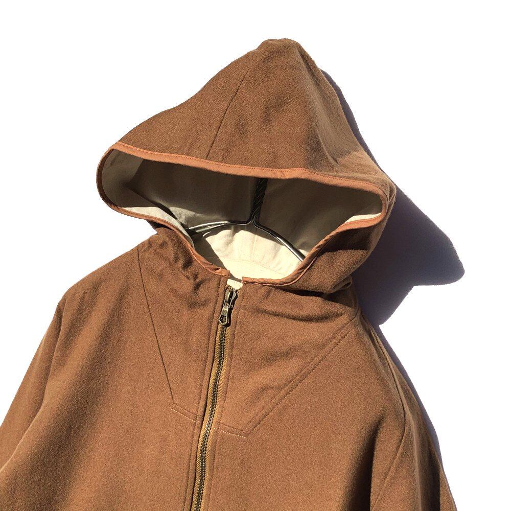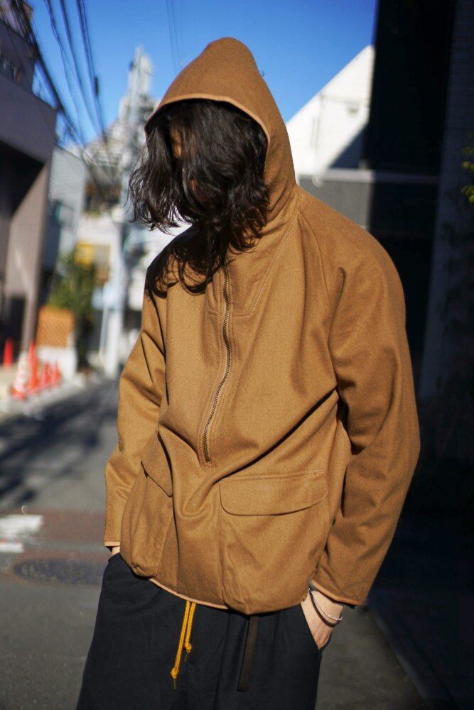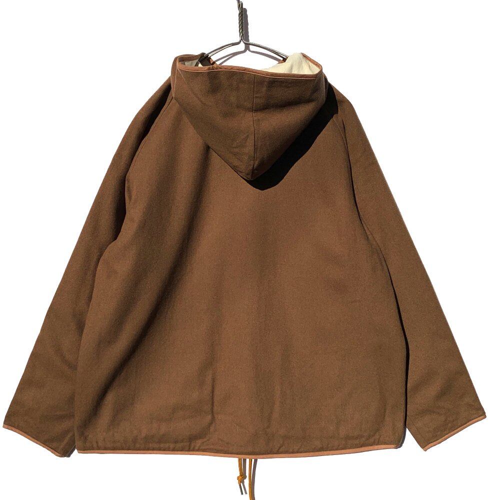[Round about] 2017 A / W Collection Anorak hoody using wool flannel with a soft and gentle texture. The lining is made of cotton thread, and the supple and beautiful wool flannel is dared to wash the product to give it a street atmosphere. The hood is well-standing and three-dimensional, and keeps its beautiful shape even when worn. I will. A drawcord is placed on the hem to adjust the length and you can enjoy changing the silhouette. The wearing photo is size 1 (S).
