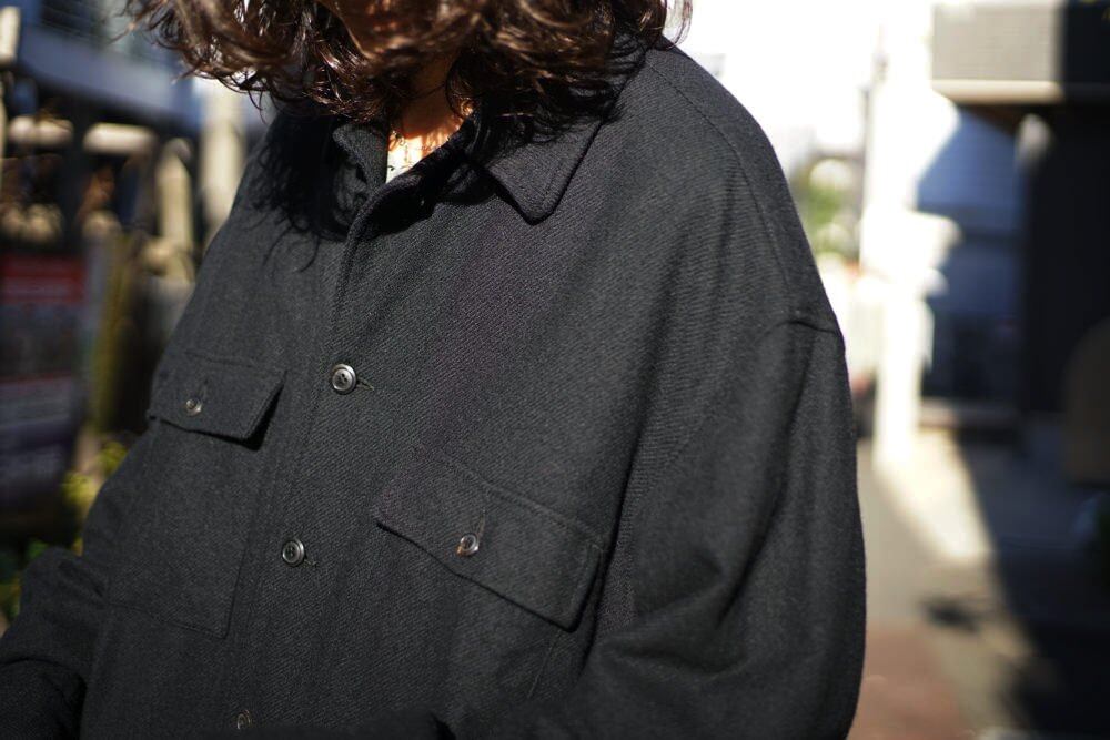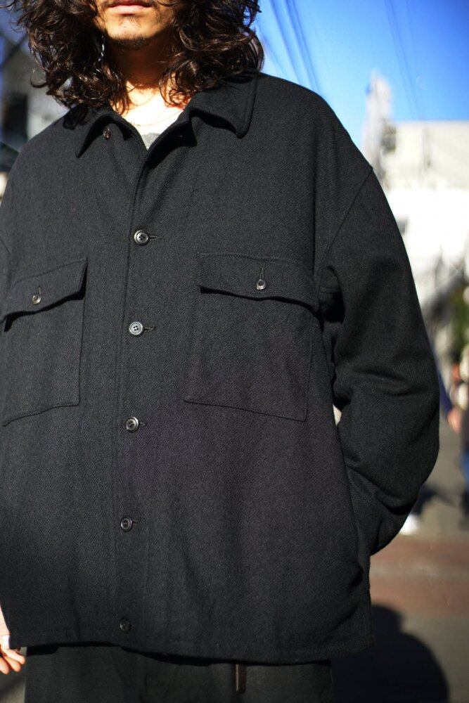 [Roundabout] 2020 A / W Collection CPO shirt using combat wool made of durable cordura nylon and wool. As the name suggests, the CPO shirt has a US NAVY military shirt as a motif and has a lining and seam pockets, making it an item that has the atmosphere of both a shirt and a blouson. The wearing photo is size 2 (M).
