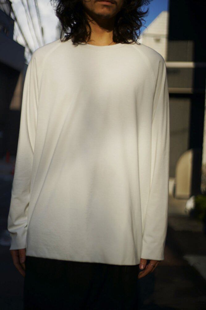 [Round about] 2019 A / W Collection A long-sleeved T-shirt made from cotton and polyester. The same material is layered on the outer and lining to create a plump texture. Most of the seam allowance is hidden inside, and it feels good on the skin and is stress-free. I would like you to enjoy the twist that may occur as you wear and wash repeatedly. The wearing photo is size 2 (M).