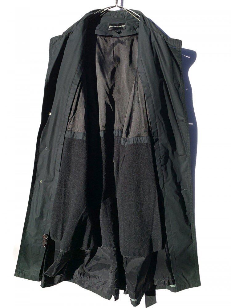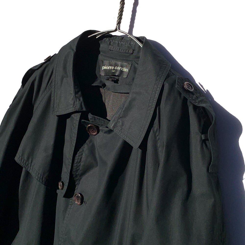 Around the 1990s, this is a Pierre Cardin single-breasted trench coat. The peach skin fabric with an elegant texture that is resistant to dirt and has a soft and matte luster is used at the top by fluffing and pruning ultra-fine polyester fibers, giving it a dull luster. The delicate color of a certain dark tone olive color gives an elegant look.