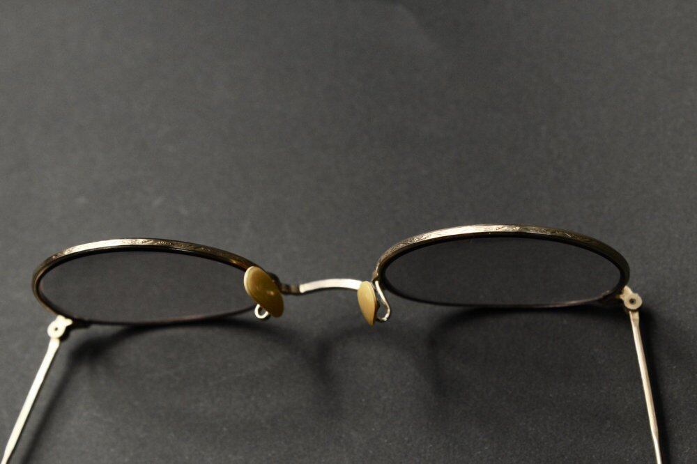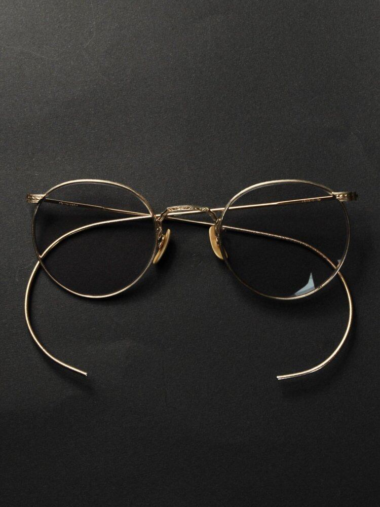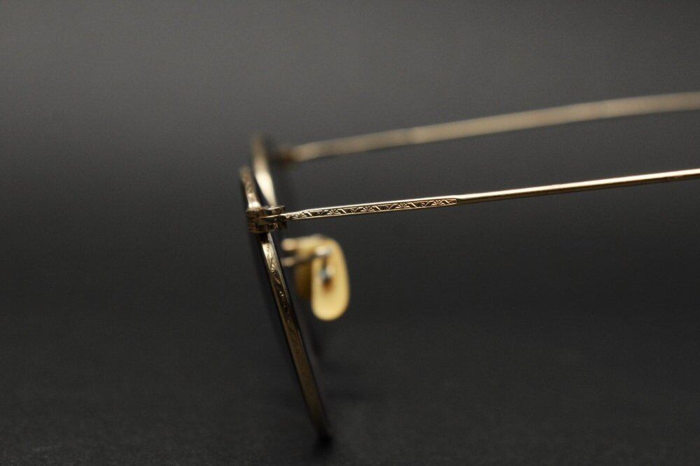 1940s vintage [American Optical] glasses. The worlds oldest eyeglass maker, commonly known as AO, is a historic brand that laid the foundation for eyeglasses. A full-view type round frame with a temple developed in the car society at the top, engraving by a watchmaker at the time of the war. Is a delicate and elegant design. The actual size of the temple is long for this type, so it is easy to put on. It is a 12Kt-Yellow Gold gold-plated specification. We have newly added a grayish color UV lens. It has been maintained at the eyeglass store. The size of the wire (nawate) can be adjusted. (At your local optician) We have scrutinized the condition, but since it is a vintage item, there are threads and scratches. Please purchase after understanding the characteristics of vintage and antique.