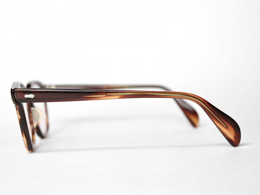 Around the 1960s Vintage [American Optical] glasses. Known as AO, it is the oldest eyeglass manufacturer in the world. Today, it does not produce fashion frames and is very popular. Safety glasses used in factories at that time were fashionable Wellington type, easy to wear, and were produced until around the 1980s, and then another company bought the type, so the ones of that age are rare nowadays. It is one. This is a rare piece from the 1960s, and the quality of the frame feels better than the late one. We have newly added a valuable amber brown color that is also popular in Tart Optical, and a lighter grayish purple UV lens among the color lenses. Appraised at a spectacle store, maintained, and the temple (or rope) can be adjusted in size for bending. (At your local optician) We have scrutinized the condition, but since it is a vintage item, there are threads and scratches. Please purchase after understanding the characteristics of vintage and antique. All of our eyeglasses are maintained and lens replaced at the optician g room in Ebisu, Tokyo.