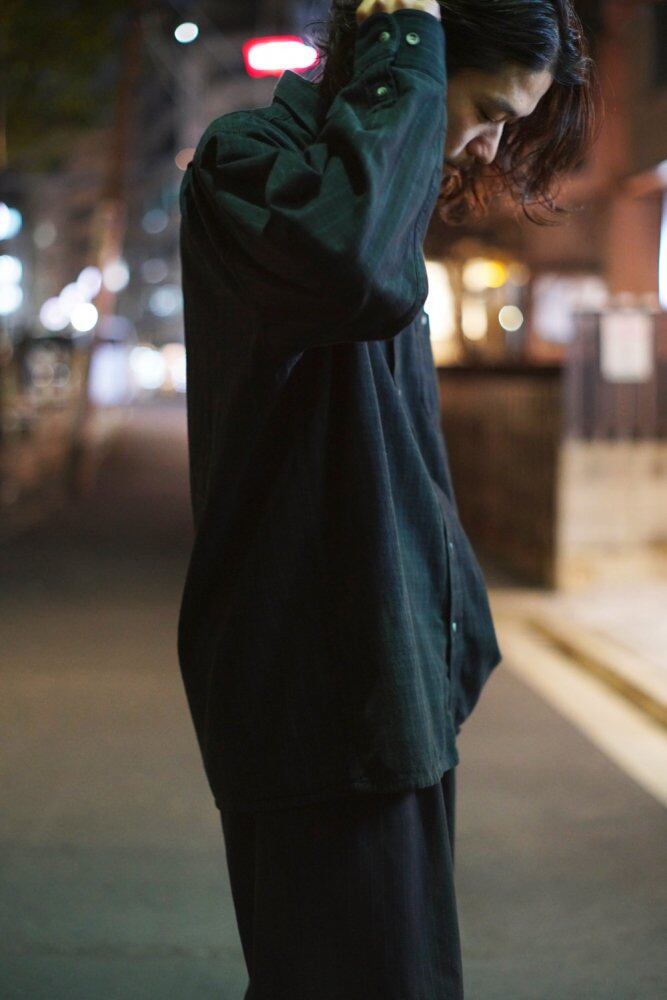 The vintage cotton flannel shirt is dyed black to give a more minimalist impression. The original color appears to stand out depending on the amount of light, and you can see a light check pattern.