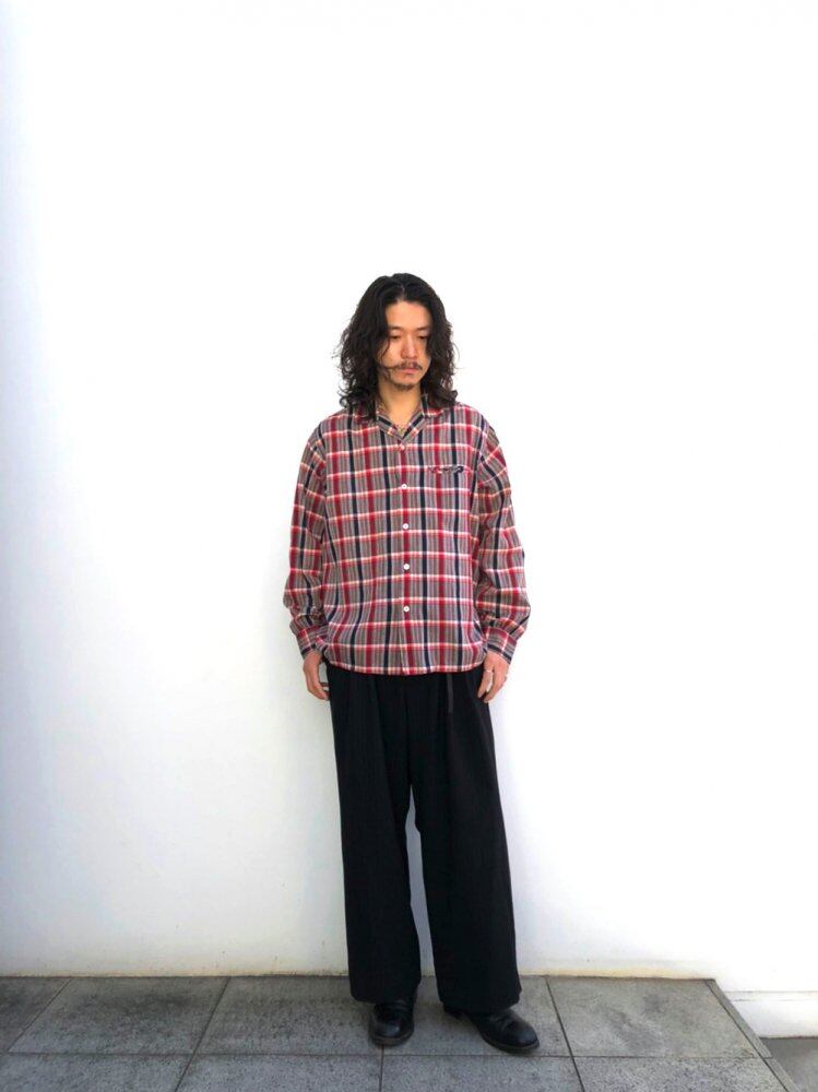 50s open collar shirt A vintage cotton shirt with a soft and smooth texture. A long-sleeved shirt that can be worn until summer. Vintage-like tasteful red, gray, and yellow check patterns.