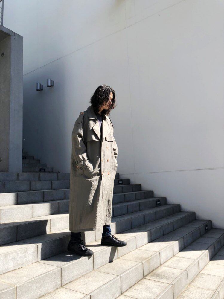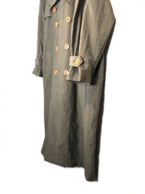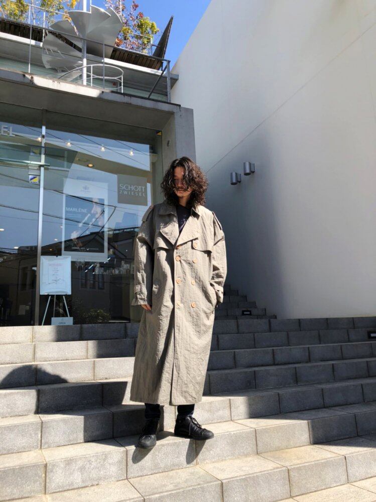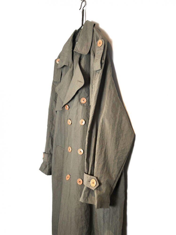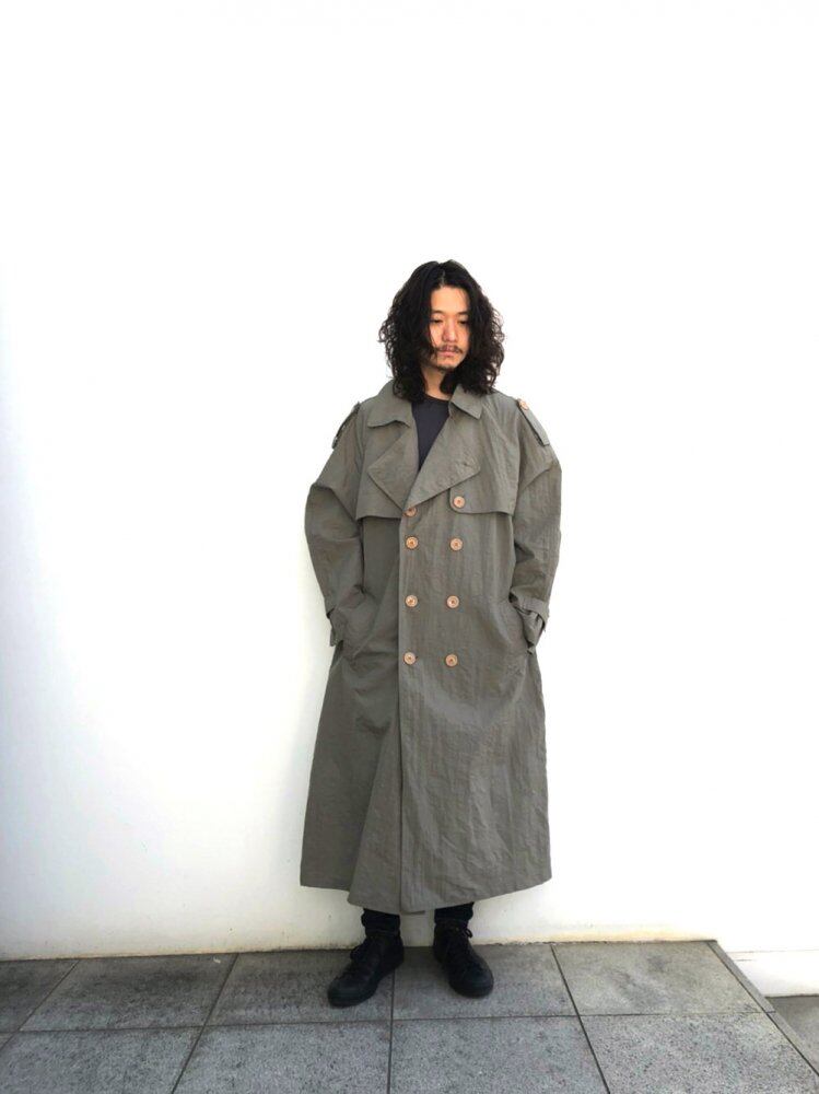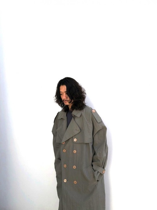 The thin and light fabric of 100% nylon is just right for a haori in early spring. A loose and voluminous over-silhouette. A grayish beige color with a calm atmosphere.