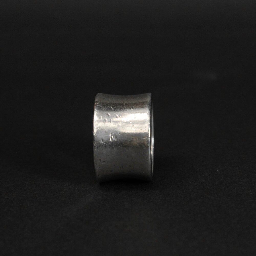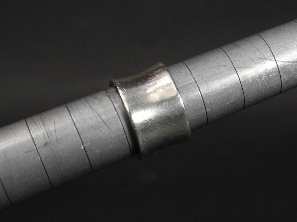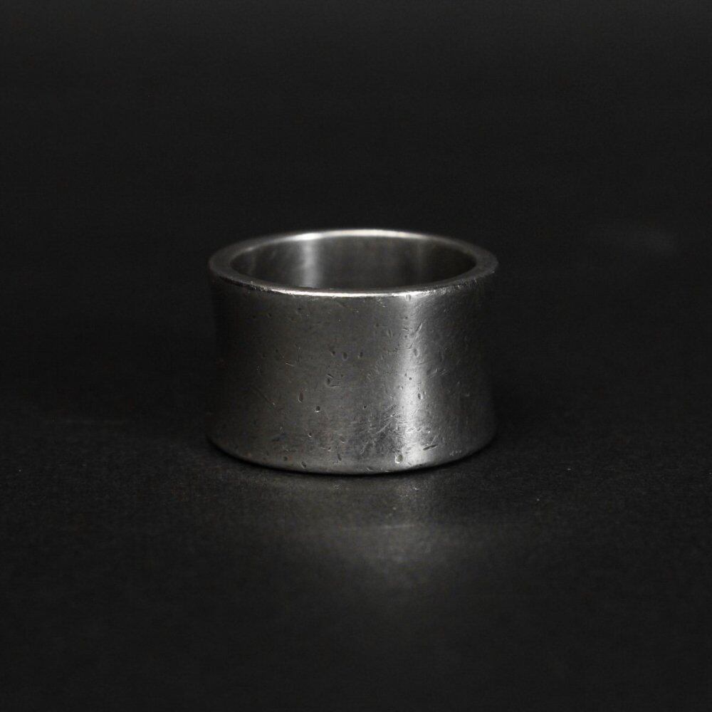 A wide design ring based on a cigar seal band. It features a minimalist look and a solid look, and is characterized by innocence not found in ordinary fashion rings. Among the vintage rings, this design is highly rare and I would like to pay attention to it. This is a wide and heavy body and a slightly dented mannish look in the center. It is a valuable individual with a small number compared to its size. From the Hallmark and design, it is probably Mexican sterling silver. Please check the condition in the photo and purchase after acknowledging the characteristics of vinteg.