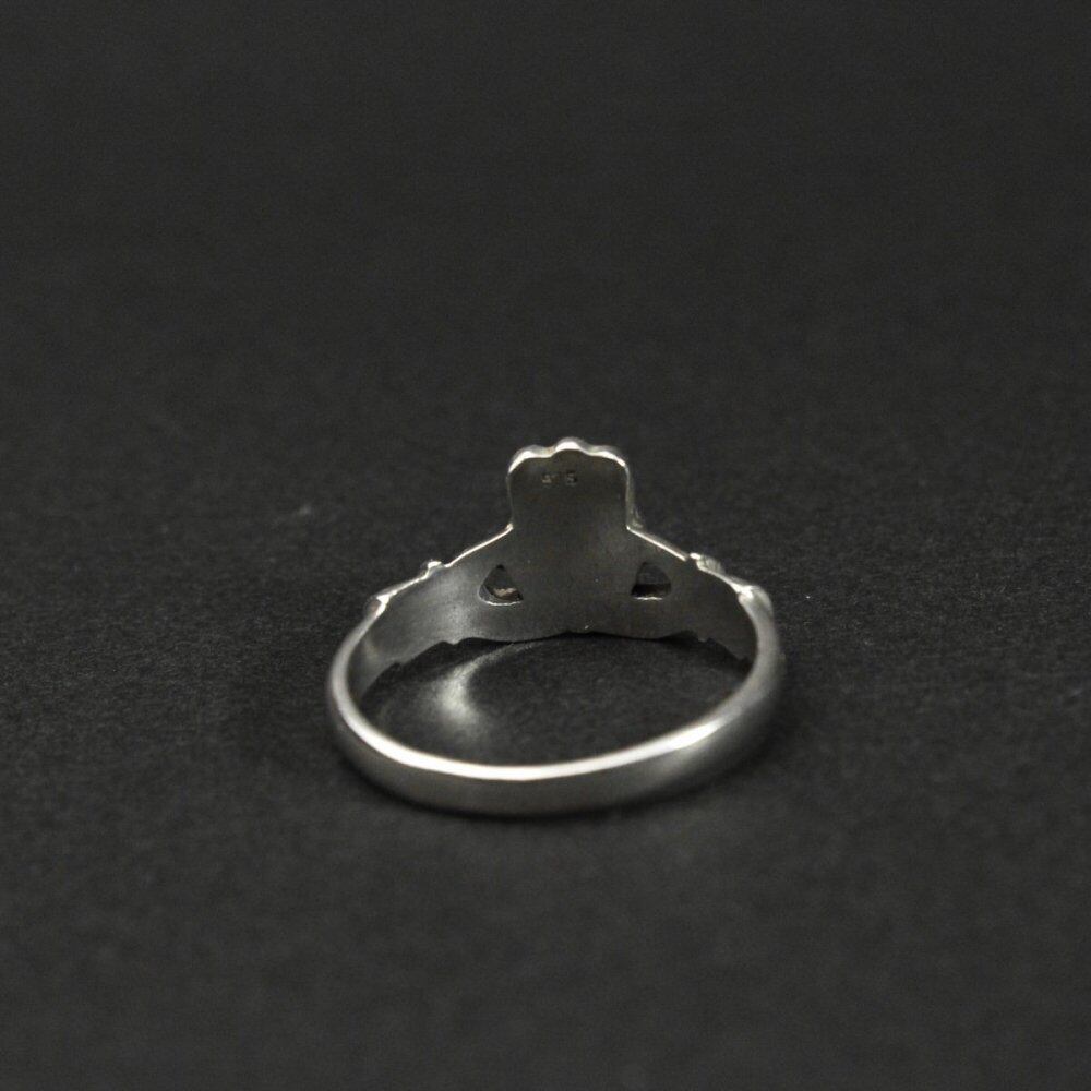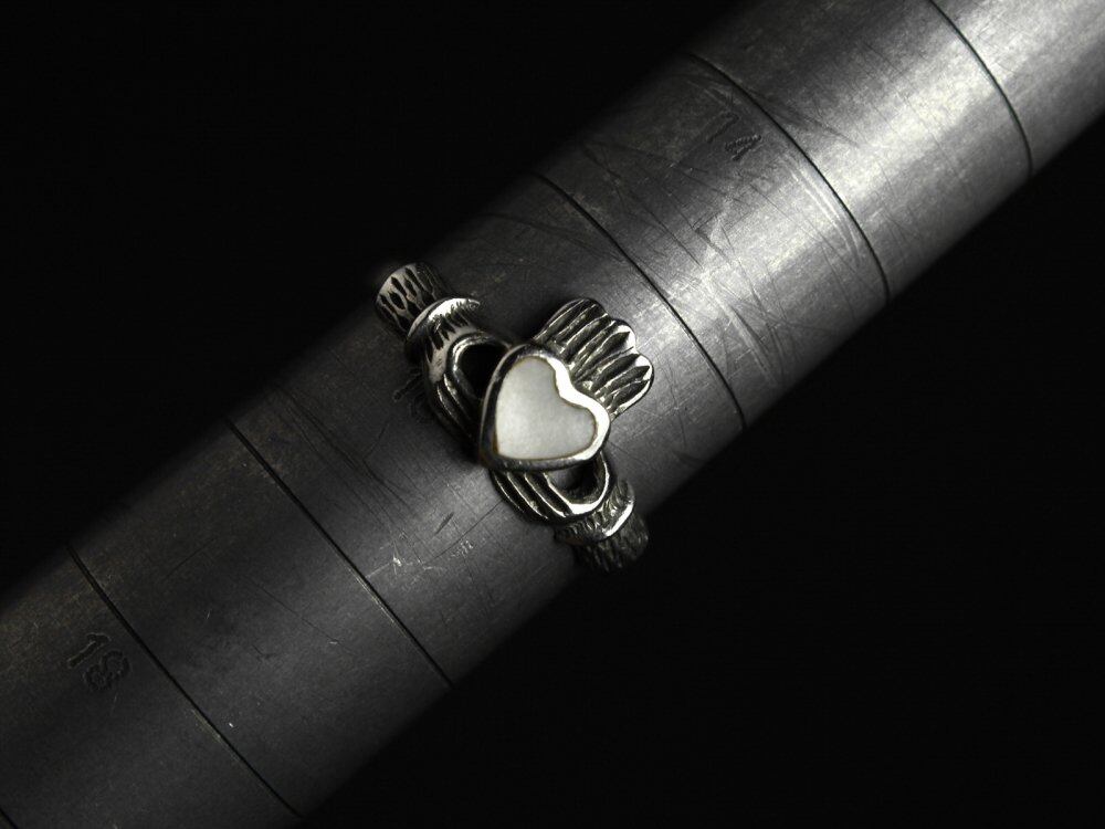 Claddagh is a traditional jewelery that originated in Ireland and has been built for centuries. Heart, crown, and hand motifs represent love, loyalty, and friendship. It is said that it has various meanings depending on the finger that can be worn by both men and women. It is a cohesive design with a clean white shell embedded in it. 925 stamp. Please check the condition in the photo and purchase after understanding the characteristics of vintage.