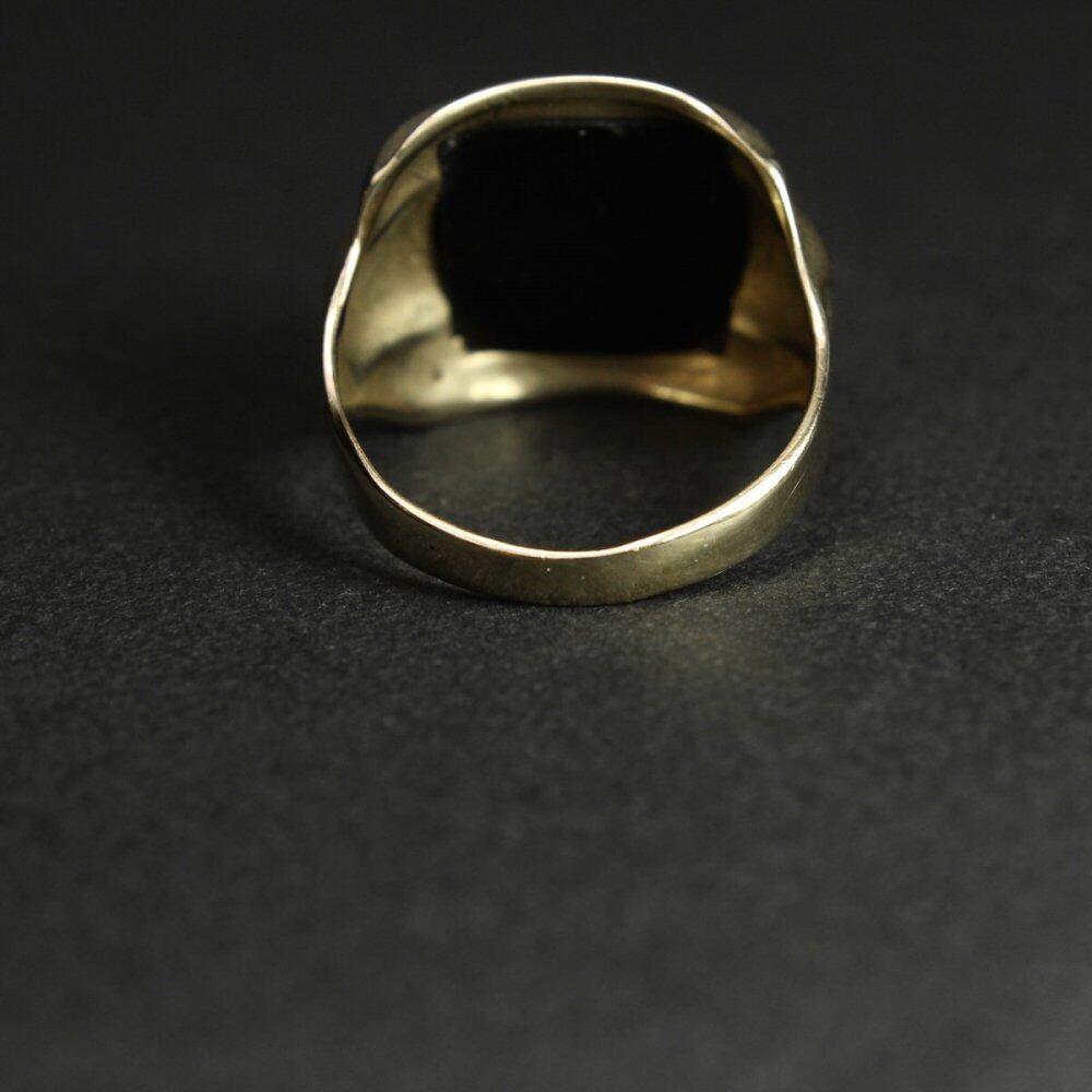 The precious mens cameo ring and ancient Greek spartan are dug, and the design is different from the image of a feminine cameo coming and going. The top is black, probably black carnelian, so that you cant tell unless you shine light from the back, giving it a solid impression. The large body and cameo top make it look dignified. Probably resized. Engraved with 10kt gold. Please check the condition in the photo and purchase after understanding the characteristics of vintage.