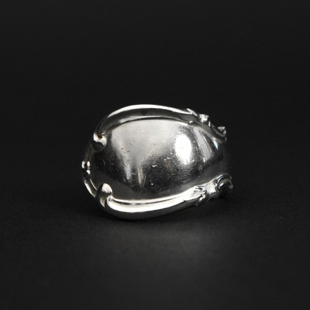 Spoon rings are said to have started around the 17th century when aristocratic servants could not buy wedding rings and stole their masters cutlery. Hippies have discovered it and revived it since the 1960s. Most of them are from the long-established American silver tableware maker that started in the 19th century, and this one uses flatwear made by the long-established American Towle Silversmiths. It has a simple yet profound feeling and an elegant appearance. This is Sterling Silver. Because it is a vintage item, there are threads and scratches. Please check the photo and note the characteristics of vintage and antique before purchasing.