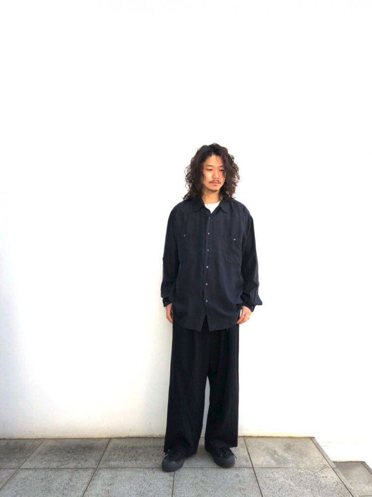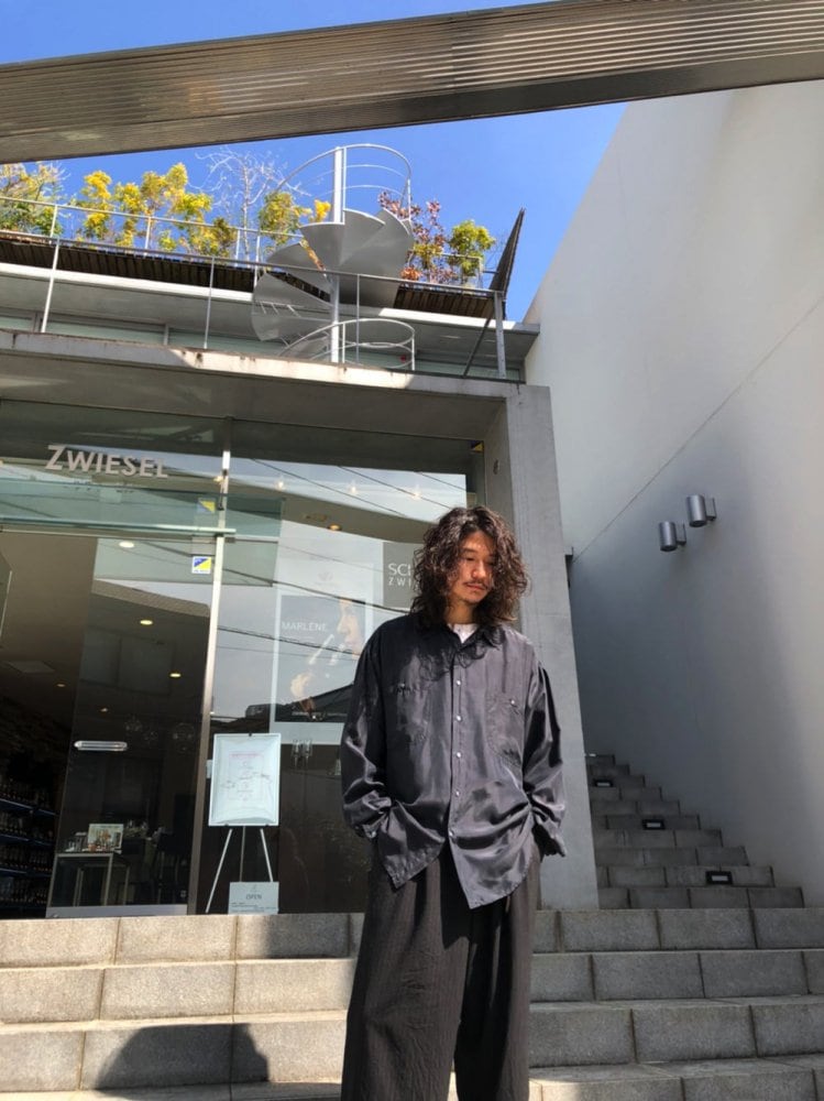 Vintage silk shirt from the 80s A black shirt made of iron plate that can be worn until summer with a smooth and light feeling that is unique to silk.