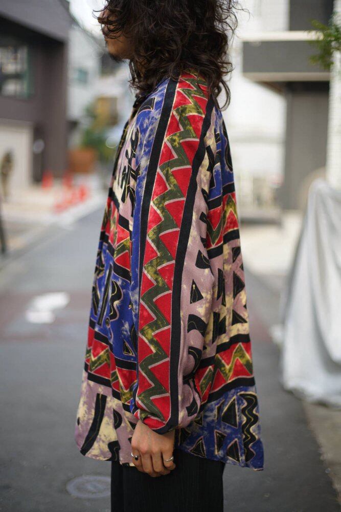 An exotic yet elegant and elegant rayon shirt with an ethnic pattern.