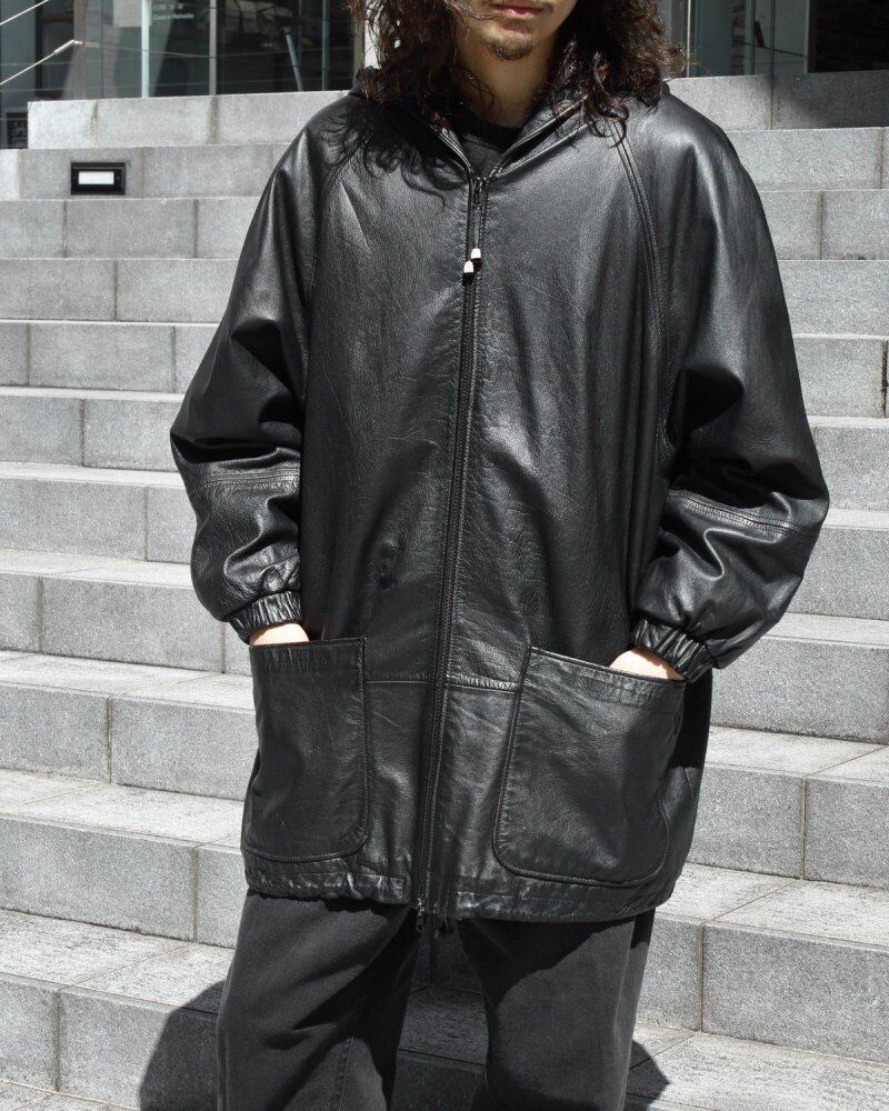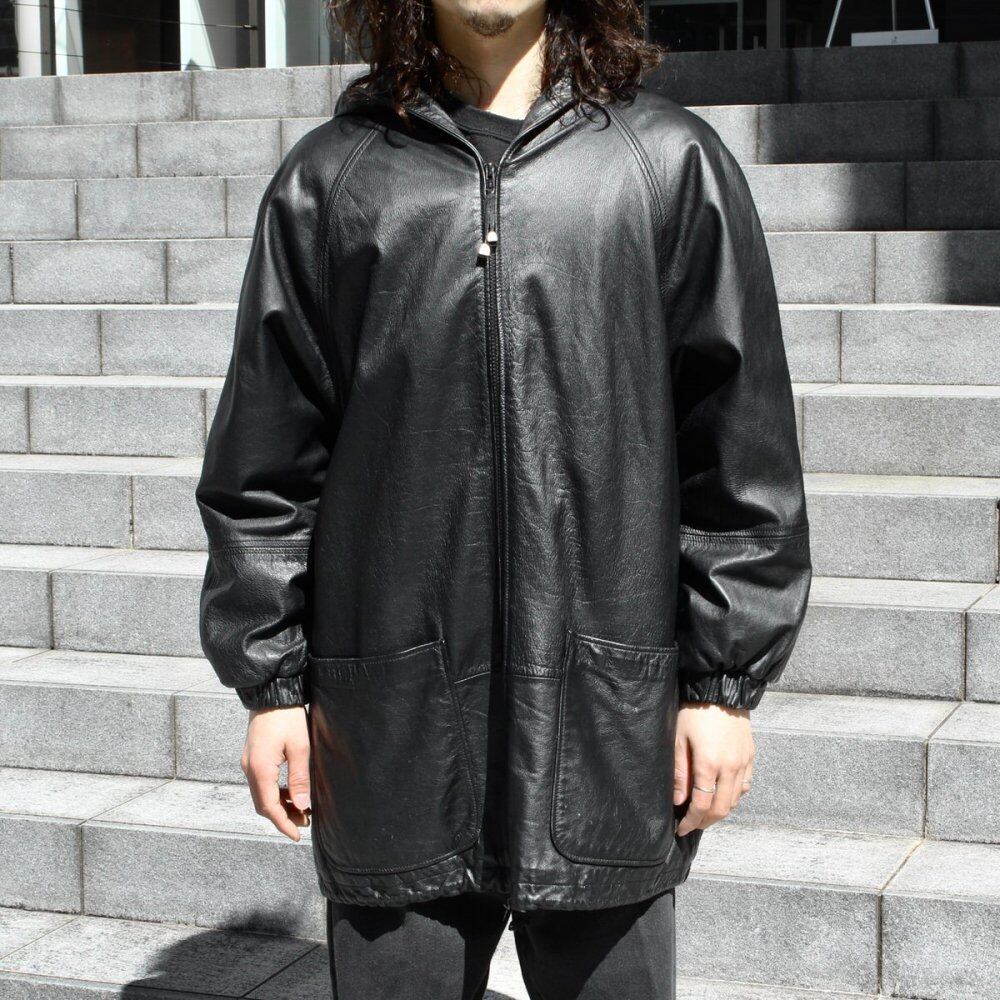 Leather zip-up jacket from the 1990s. A big silhouette that shows impact with a double zip-up type with a large hood. Soft calf leather is used to make it lighter and more relaxed than it looks. It is an item with raglan sleeves that has a sporty feel and a leather-specific mannish. The color is black. The back body is lightly soiled and is in good condition subjectively. Since it is an old product, it rarely deteriorates over time. Please check the photo and understand the characteristics of vintage before purchasing.