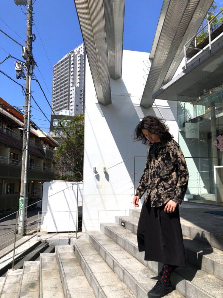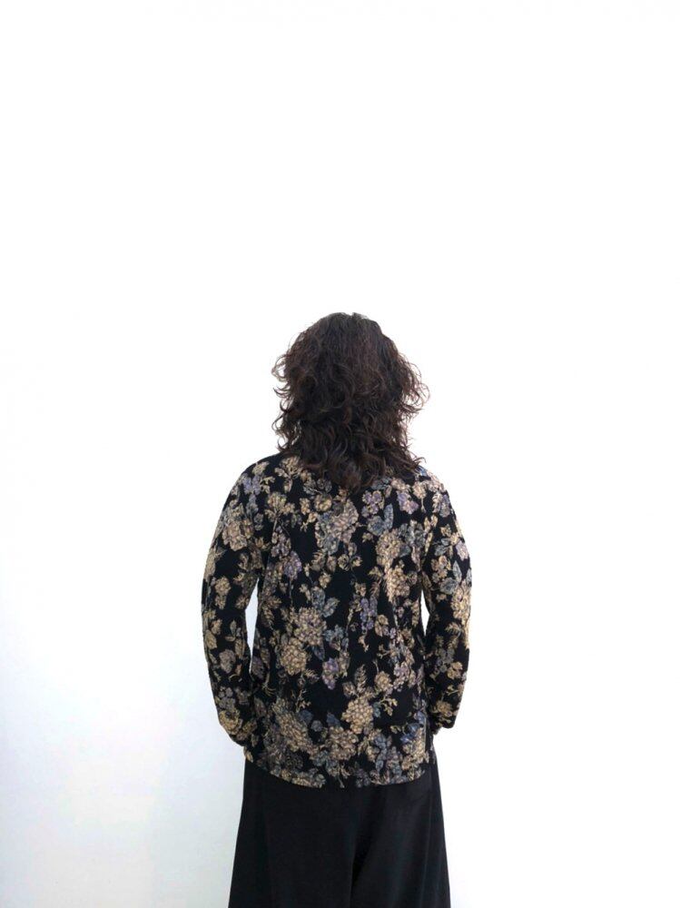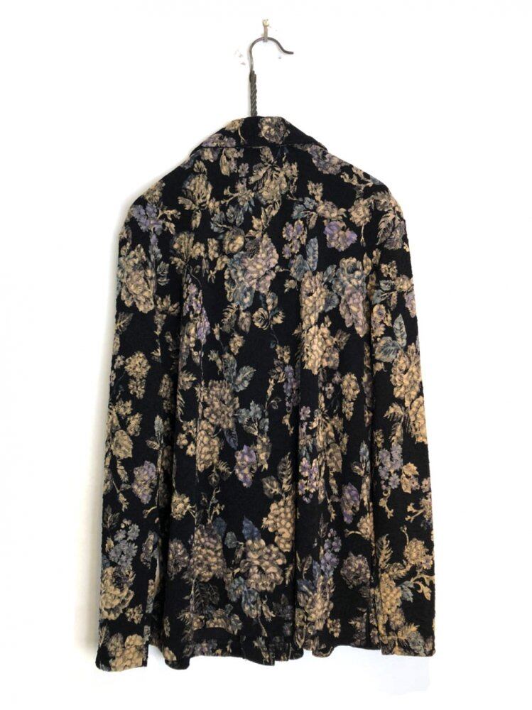 80s vintage knit shirt Black color with a dry flower-like flower pattern is cool acetate x polyester knit fabric that can be worn in the spring with a smooth feel.