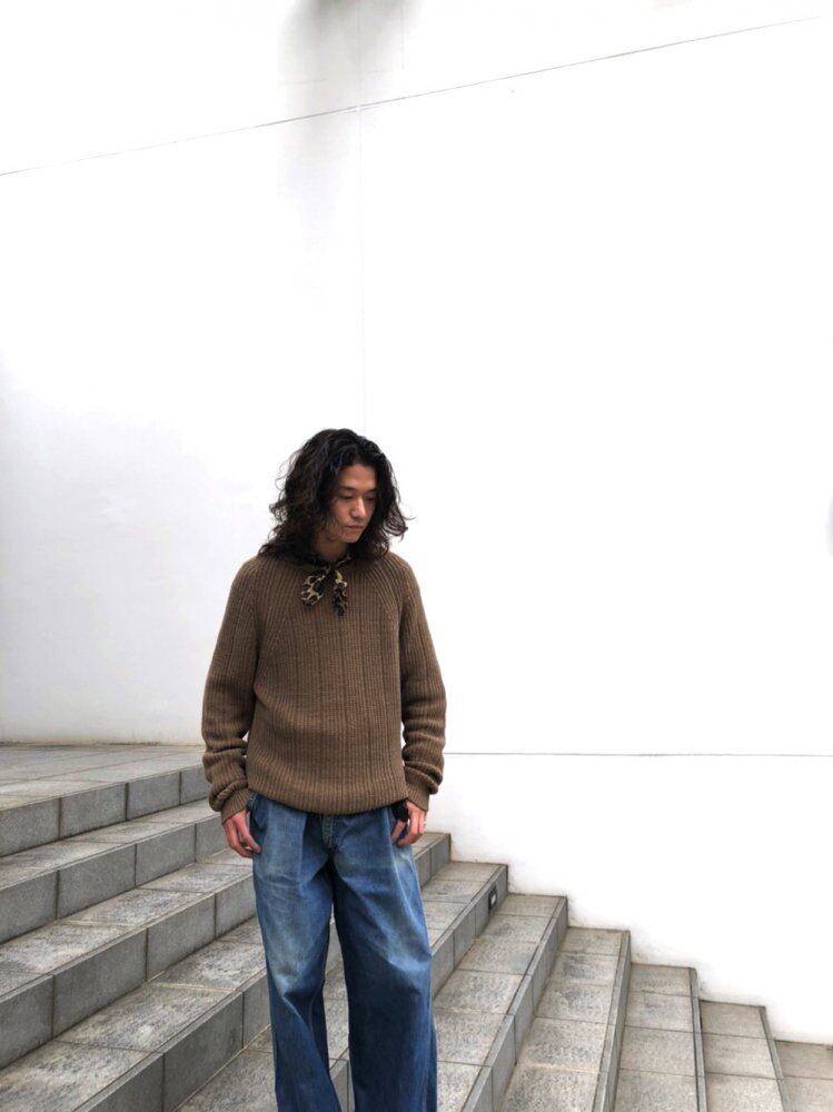 Vintage sweater of the 90s Rummy x cotton sweater for spring with a smooth texture It is a useful item that gives a moderate volume to one that is easy to match with a mature khaki color to a good silhouette with a moderate amount of room.