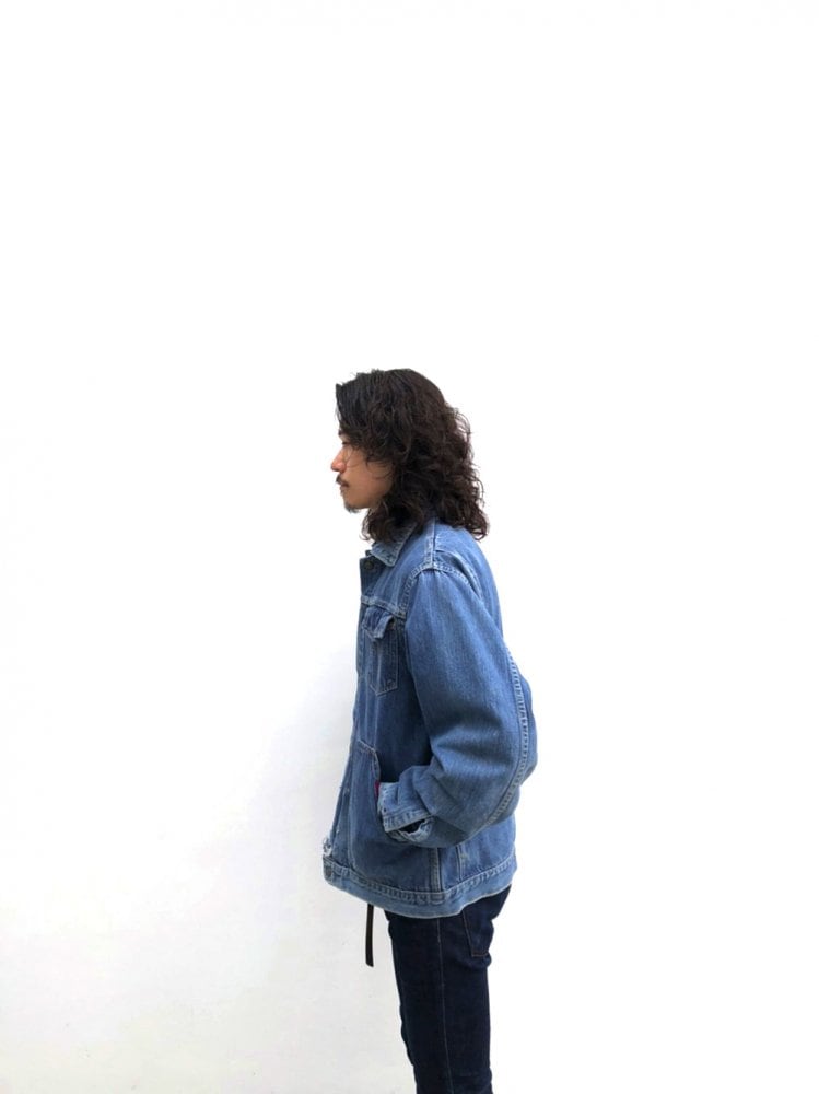 60's denim jacket A vintage denim jacket with a moderately loose over-silhouette that has a nice fading indigo color and feels good. It is a classic vintage item that can be used regardless of the season regardless of fashion or obsolescence. (Please note that there is frayed damage at the bottom of the front alignment) Quality: 100% Cotton Color: Fade Indigo 【size】 Shoulder width: 54 cm Width: 60 cm Sleeve length: 63 cm Length: 61 cm [Model size] Height: 175 cm Shoulder width: 43 cm B (chest circumference): 85 cm W (waist): 71 cm