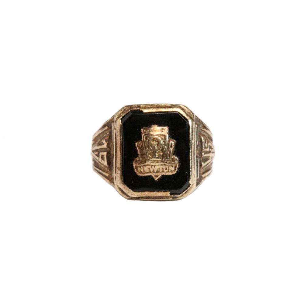 1945 Vintage college ring. Rare onyx stop, square design. The asymmetrical design with beautiful contrast and cut-out edges is stylish. Engraved with 10kt gold. Please check the condition in the photo and purchase after acknowledging the characteristics of vinteg. Size: No. 8.5 Head part (vertical): 14mm