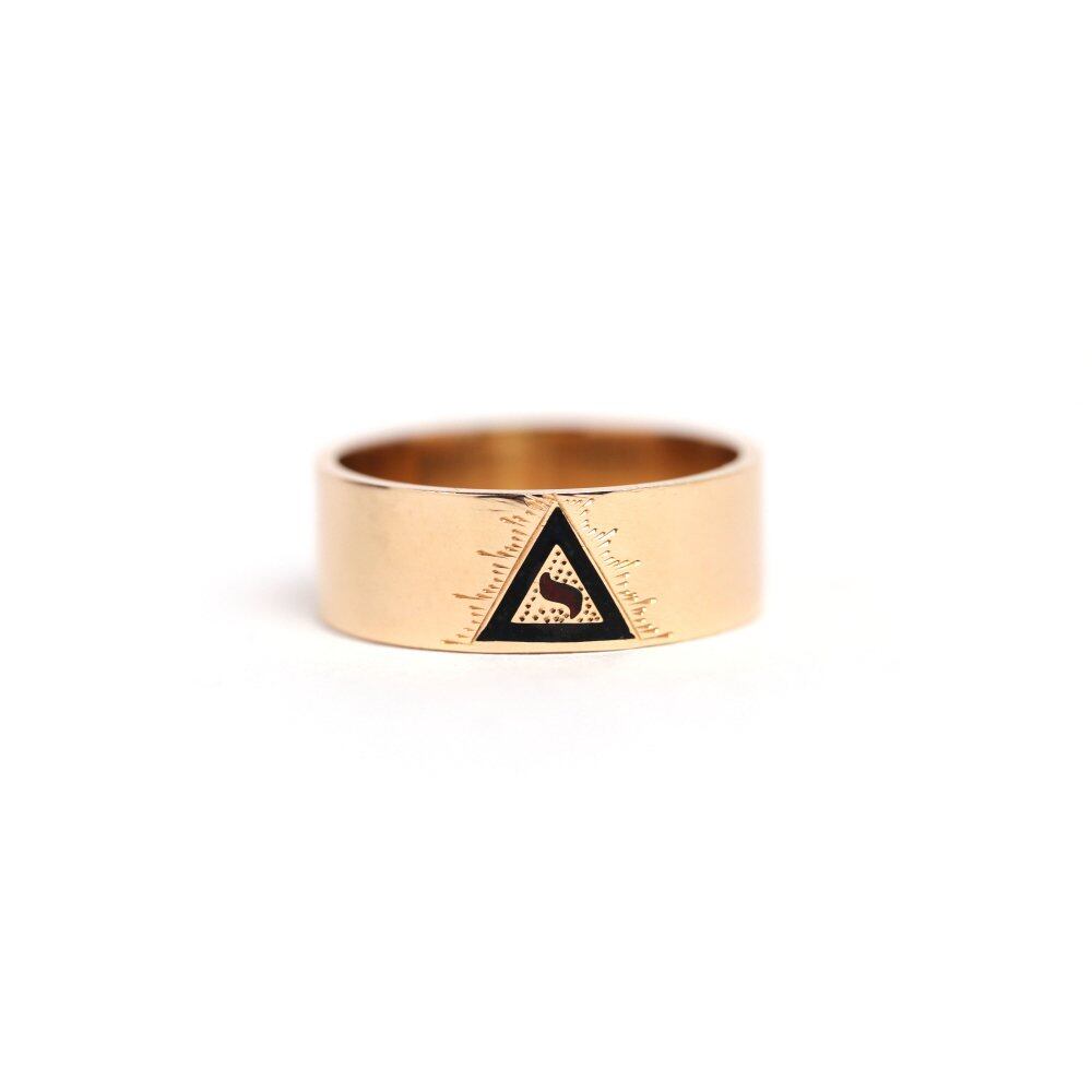 It is a vintage masonic ring. Scottish Light is the highest class title in 33 levels (levels) of Free Meson. This is a very rare original with many replicas in the top and 33rd floor rings. Delta (triangle) 33 marks and fine engraving. It gives off a more rigorous atmosphere from its minimalist design. The motto on the back is only for the original, deus meumque jus God and my rights (law), which is also engraved on the coat of arms of the British royal family. Engraved with 14Kt Gold. Compared to 10kt, it has a more profound feeling, a strong yellowish color, and a simple design with a strong personality. Please check the condition in the photo and purchase after acknowledging the characteristics of vinteg. Size: No. 19.5 Head part (vertical): 8mm