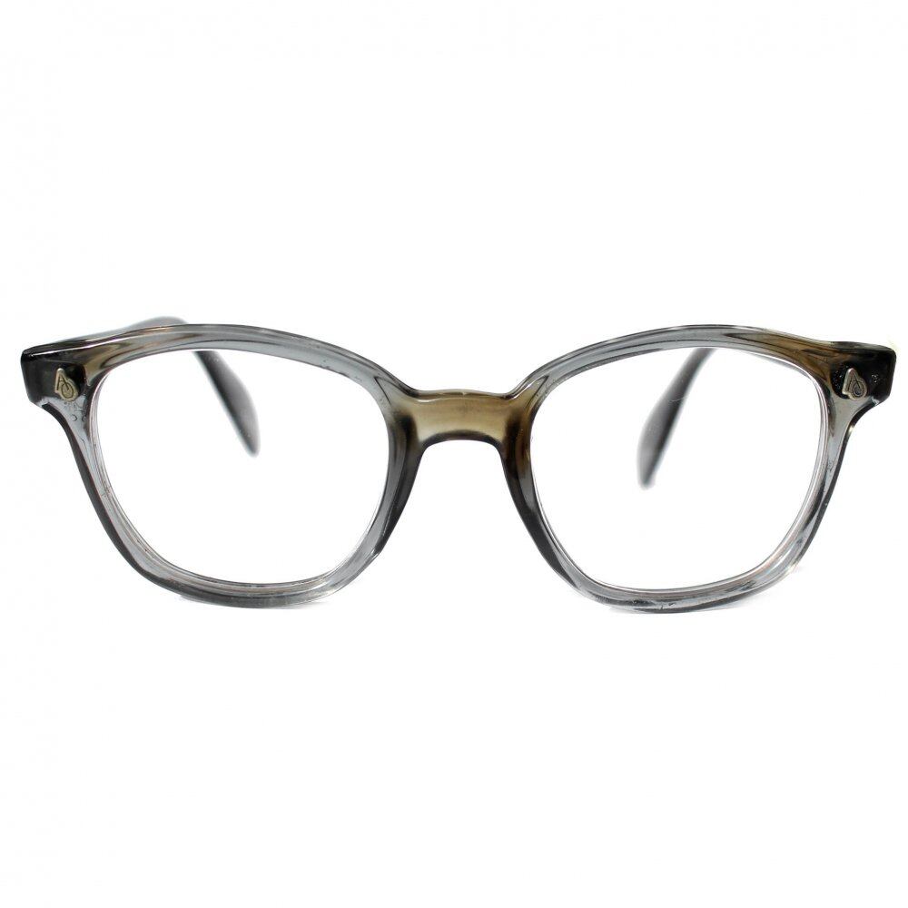 Around the 1960s Vintage [American Optical] glasses. The worlds oldest eyeglass maker, commonly known as AO, is the worlds oldest eyeglass maker. Today, fashion frames are not produced and are very popular. Safety glasses used in factories at that time are fashionable Wellington type and easy to wear, and this is a more utility item because there is no windshield to make goggles and there is no installation. After being produced until around the 1980s, another company bought the mold and made it, so nowadays, the one of this age is a rare one. It features a grayish clear frame that is familiar to the face and has a feeling of intimidation. We have newly added clear UV lenses that have been maintained at the eyeglass store. The size of the wire (nawate) can be adjusted. (At your local optician) I dont know if you wear it, but when you hold it over the sun, you can see the color change of the frame. Also, this is also difficult to understand when wearing, but under the same conditions, cracks can be seen inside the base of the left temple. Please check the photo. We have scrutinized the condition, but since it is a vintage item, there are threads and scratches. Please purchase after understanding the characteristics of vintage and antique. Lens length: 42 Lens width: 48 Bridge width: 22 Temple size: Notation 4 3/4 --Actual size 5.9inch Overall length 15cm