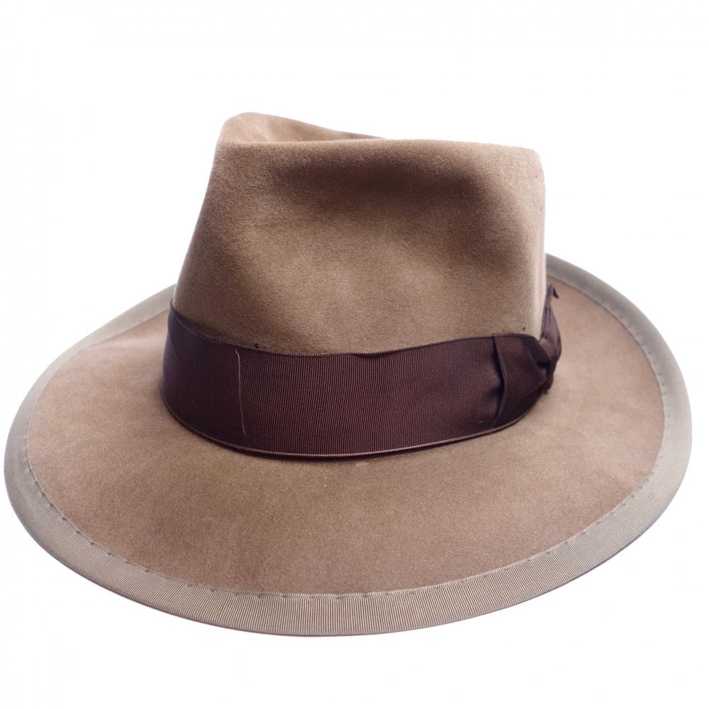 Vintage around the 1950s, [DISNEY] Fedora hat. The oldest American manufacturer that has been making hats since the early 19th century has grown to be called Americas second, but it is a brand that disappeared in the late 1960s after being acquired by STETSON in the 1950s. Mallorys hat has a good image in both design and quality, and this is probably a high-end model that was sold for $ 15 at that time like other manufacturers. Its a glossy and very smooth felt with a little hair, but its nutria felt, which is a very high quality felt that Ive seen high-end models from various manufacturers. The light olive piping attached to brown beige by hand stitching is also stylish. A whippet-shaped and elegant silhouette. The upper part of the ribbon is about to be disciplined, but there is no problem with wearing it. It is in a relatively good condition subjectively. Since it is old, it rarely deteriorates over time. Please understand the characteristics of vintage. Size: 7 1/4 Top height: 12.5 Brim: 7.7 Inner circumference (head circumference): 57.5 Inner circumference (vertical): 20.5 Inner circumference (horizontal): 17.2