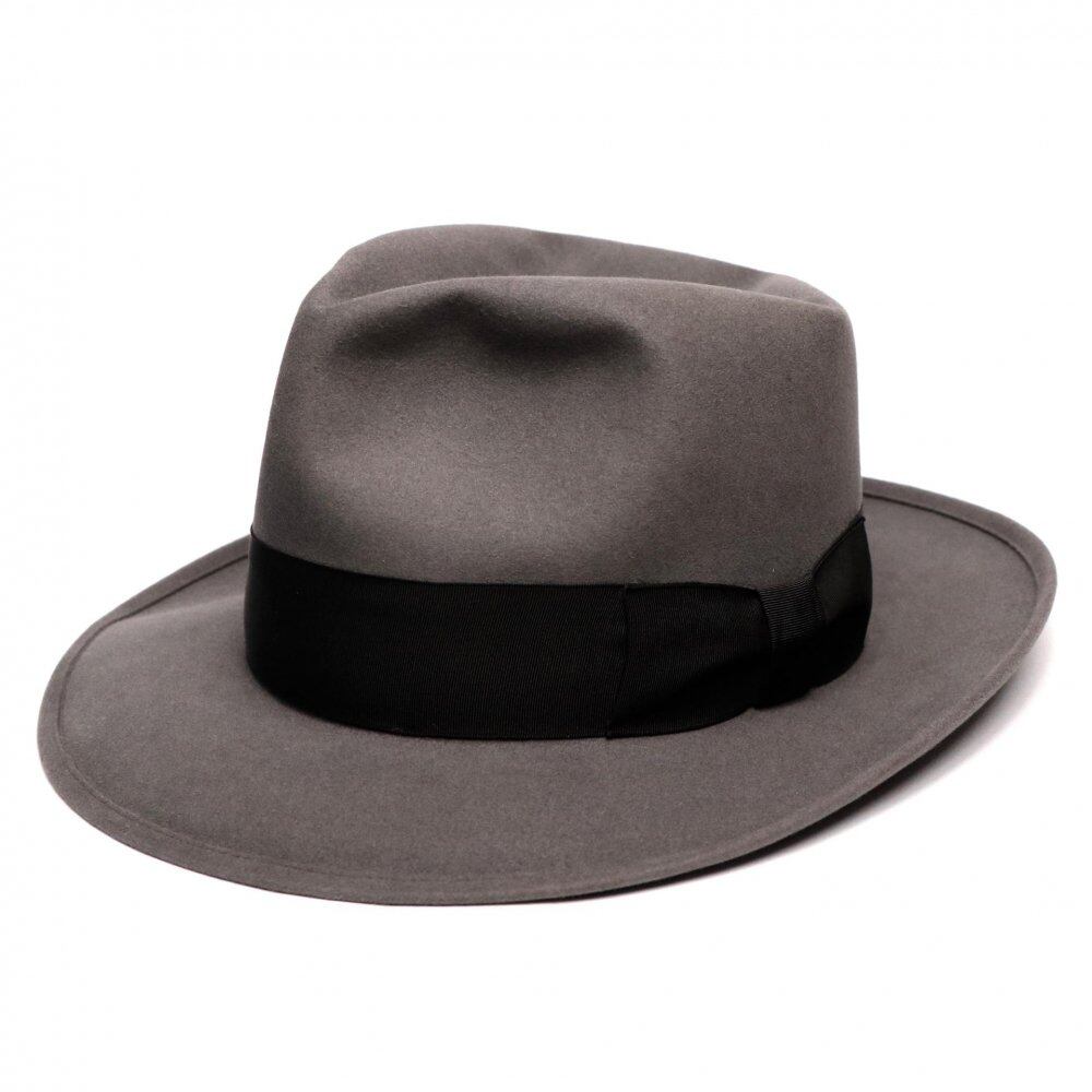 Around the late 1940s Vintage, Stetson [Royal Stetson] Fedora hat. It started in Philadelphia in 1865 and continued to make high quality hats until the factory burned in the 70s. In a blink of an eye, the worlds largest hat industry was established and now its Vintage is entertaining without fading. The ice gray felt makes you feel astringent and the tight silhouette gives a mannish and elegant impression. The precious long brim and the crown silhouette that rises forward further promote the masculine odor. A valuable large size that you do not know will be found in the future. There is a feeling of use over the years, but it is in a relatively good condition from a subjective point of view. Since it is old, it rarely deteriorates over time. Please understand the characteristics of vintage. Size: 7 3/8 Top height: 11.5 Brim: 7 Inner circumference (head circumference): 59 Inner circumference (vertical): 20.8 Inner circumference (horizontal): 17.8
