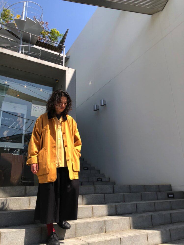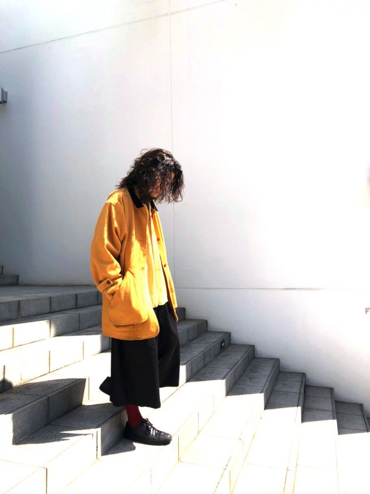 Field jacket in the 90s Bright mustard yellow that shines in spring Loose and voluminous over-silhouette A piece of cotton fabric with a moderate flesh that can be used not only in spring but also in a wide range of seasons