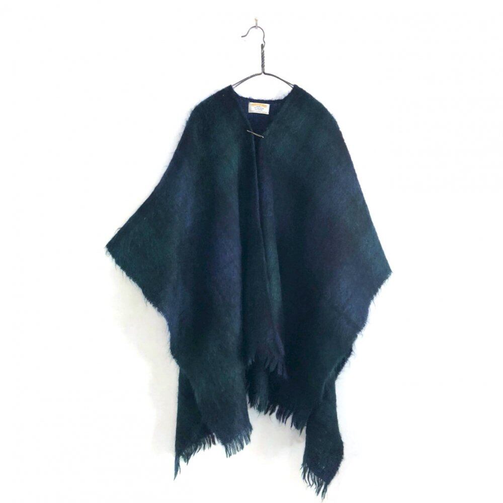 80s Vintage Mohair Shawl Authentic black watch check with the unique texture of fluffy long-haired mohair Large size that can produce a generous volume with one piece in very good condition