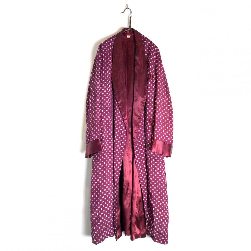 Vintage rayon gown of the 50s Elegant and luxurious atmosphere with rayon satin fabric that falls smoothly White and blue small pattern with Bordeaux as the base color Insert it under a coat etc. as a well-balanced good silhouette layered item with a moderate amount of room Even if you use it ◎