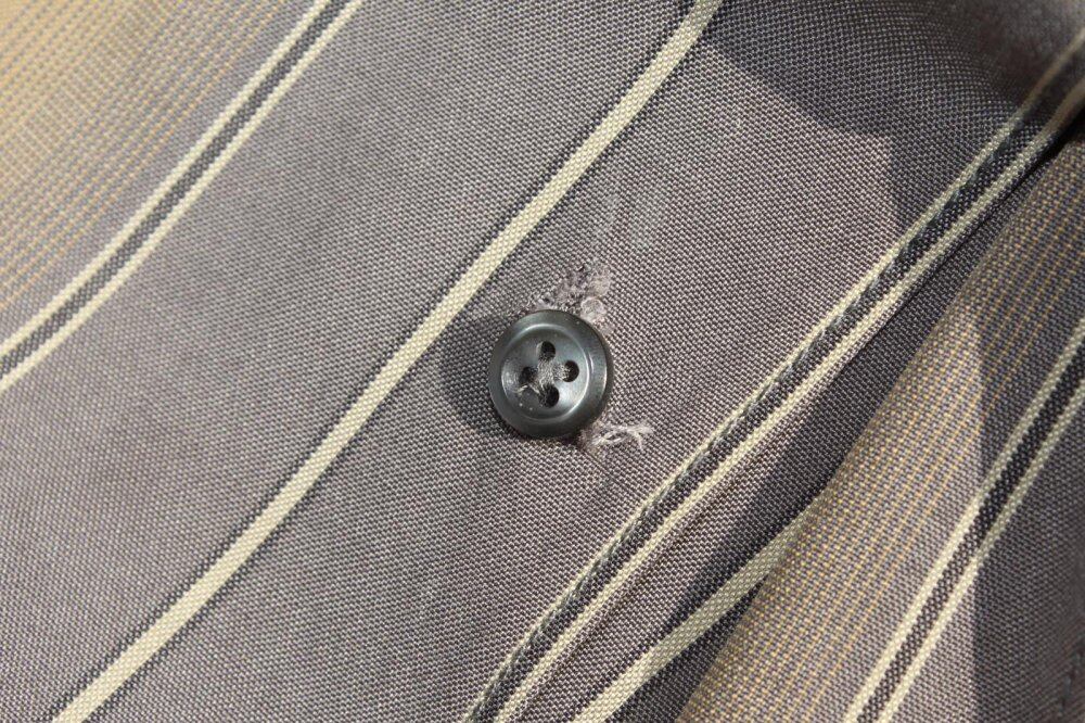 A Tencel shirt from the 1990s. Tencel fabric with silky feel and firmness, rayon-like softness and drape. Based on the grayish color, the astringent shadow stripes of the 1950s give a calm impression. L size and relaxed box silhouette. I dont know if I fasten it, but there are two damages to the front button attachment position, and it is in a good condition subjectively. Since it is an old product, it rarely deteriorates over time. Please check the photo and purchase after acknowledging the characteristics of vintage.