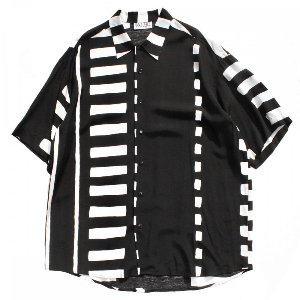 A rayon shirt from the 1980s. Made in Italy, it is a thin and elegant fabric that you can enjoy the lightness and smooth drape peculiar to rayon. A design in which a rare monochrome border stripe print that resembles a piano keyboard shines on a black body. Large size but a more relaxed big silhouette. It is in good condition subjectively. Since it is an old product, it rarely deteriorates over time. Please check the photo and purchase after acknowledging the characteristics of vintage.