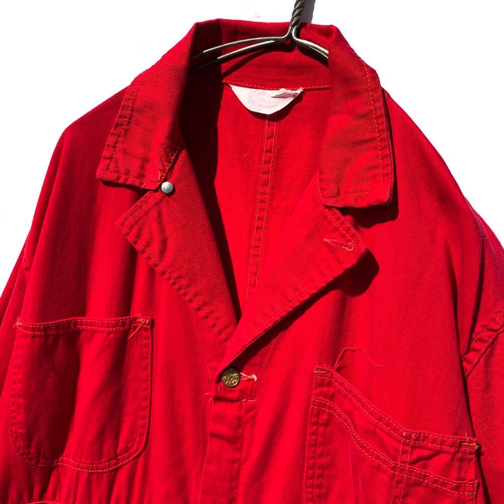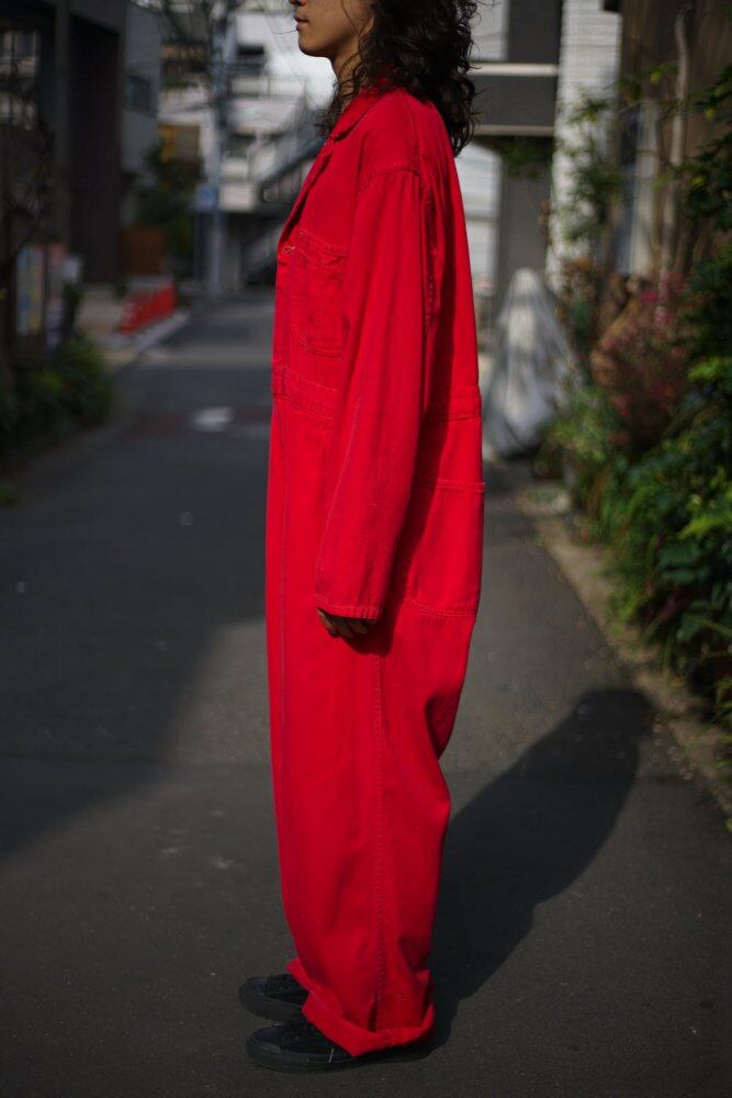 It is an all-in-one jumpsuit with a beautiful red color that gets a lot of looks. The aggressive coloring unique to vintage, the red body is accented with gold buttons.