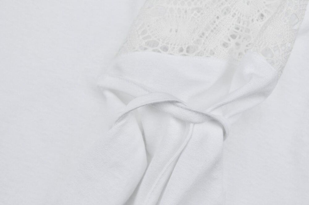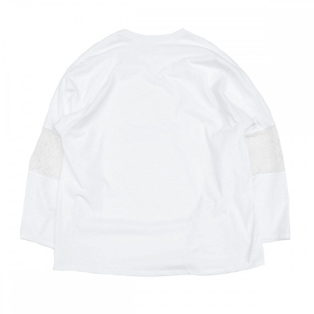 Our original pimpstick remake line Adopting a 100% cotton body, the sleeves are disassembled and reconstructed once, and the sleeve ribs are removed to create a wide silhouette for a relaxed impression. By incorporating cotton torsion lace in between, we are proposing an unprecedented mens cut-and-sew. By matching a simple pattern instead of a floral pattern or baroque style, we express that the sheer feeling of the lace creates a faint sensuality and a feeling of lacking while showing the mannishness. A deep slit is provided in the cuffs to make it more swaying in the wind, and a cord is attached to make it easier to use in daily life. The color is white. Please use the net for washing.