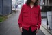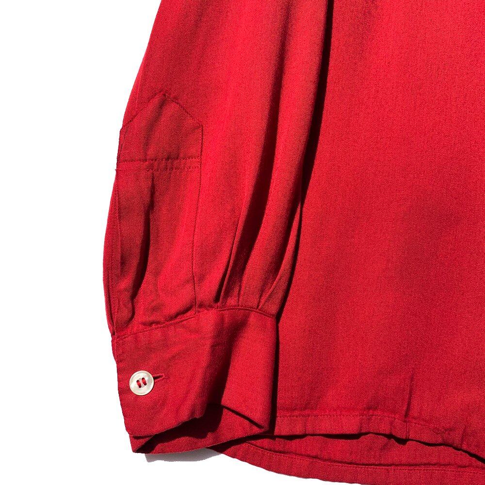 Very high quality rayon gabardine fabric that shows a drape feeling with a moist and soft texture is used, and it has an elegant appearance including a powerful red color.