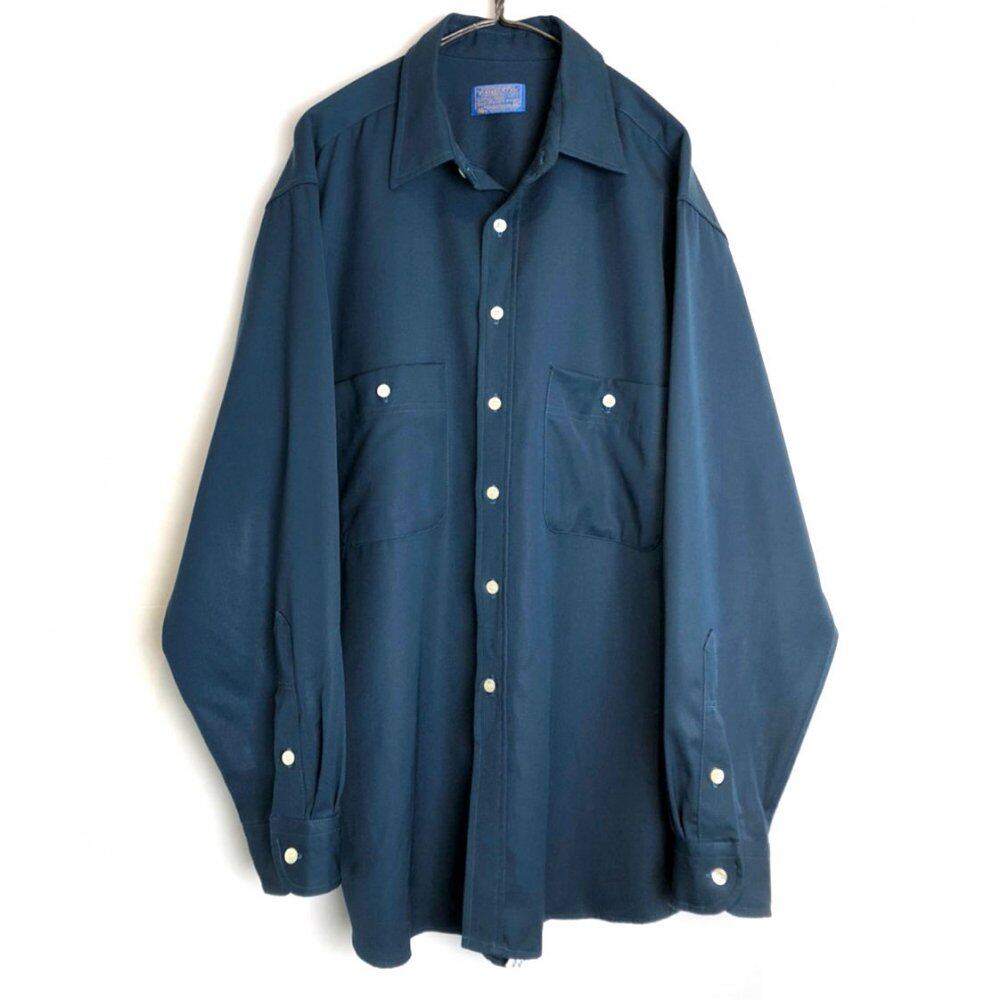 70s Pendleton wool shirt Sir Pendleton, one of Pendletons luxury line. A thin and smooth wool gabardine fabric. An over-silhouette shirt that can be worn in a relaxed and modern size. Navy color