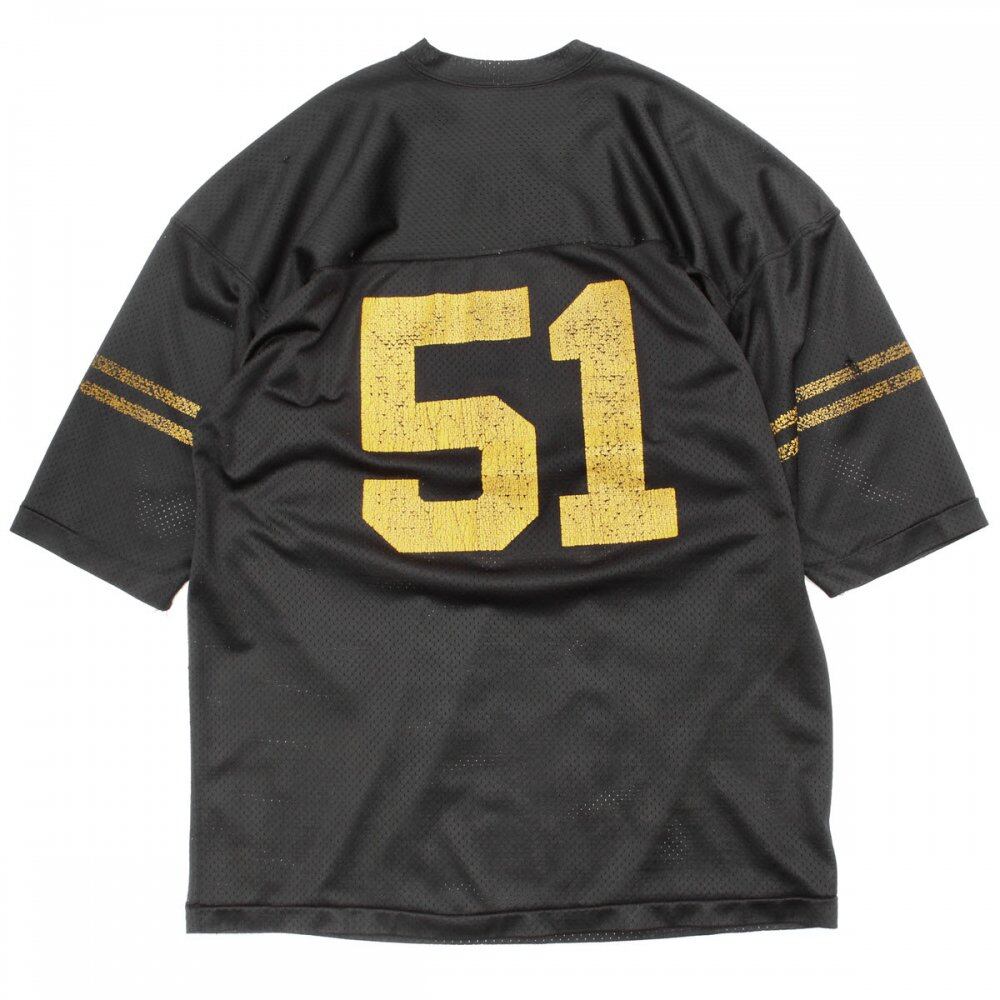 Champion American football T-shirt from the 1970s. In the old age, a rare black body and soft nylon mesh fabric are used, and it has a thick texture without the hardness and the feeling of getting caught, which is common in mesh materials. It is a precious XL size and a relaxed silhouette. Since it is an old product, it rarely deteriorates over time. Please check the photo and understand the characteristics of Vintage before purchasing.