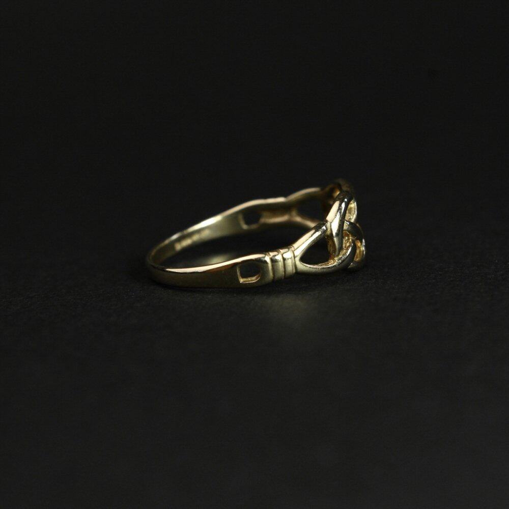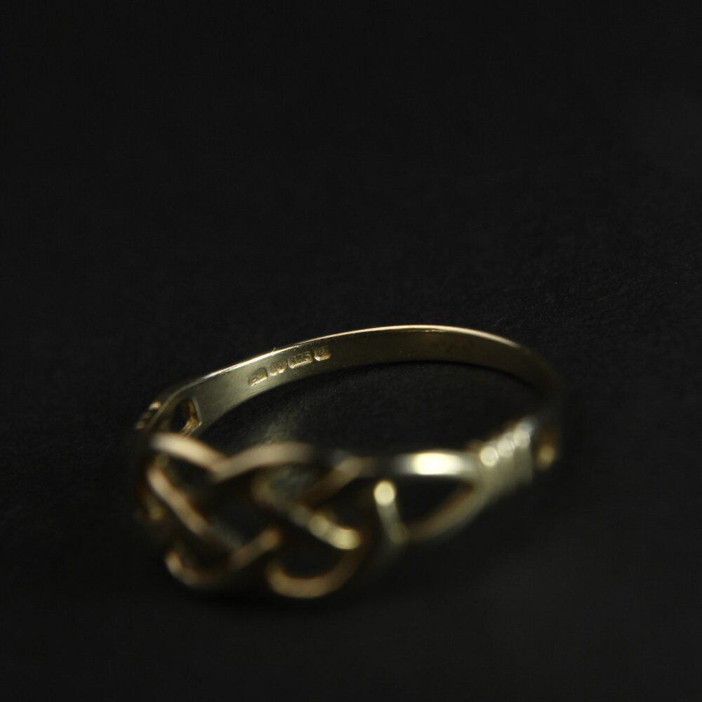 Celtic Knots have been seen in the Roman Empire since the 3rd century and have been introduced to Ireland around the 7th century under the influence of Christianity. The feature is that there is no beginning and end of the knot, reminiscent of eternity and reincarnation. This is a type called a sailors knot composed of two lines, which means love and friendship and is also used for Celtic wedding rings. is. This item is recommended for both men and women because of its rugged silhouette and simple and soft design. 357-9ct gold engraved, Sheffield office hallmark. Please check the condition in the photo and purchase after acknowledging the characteristics of vinteg.