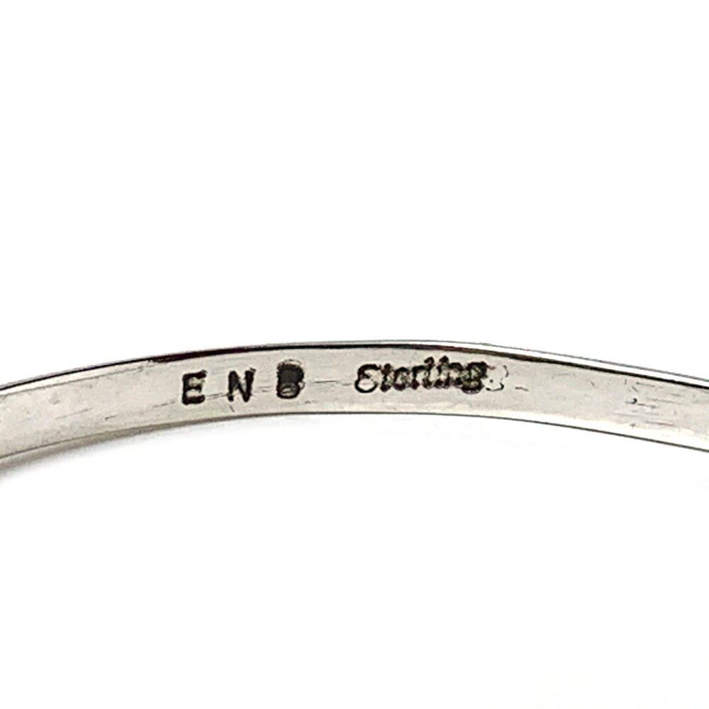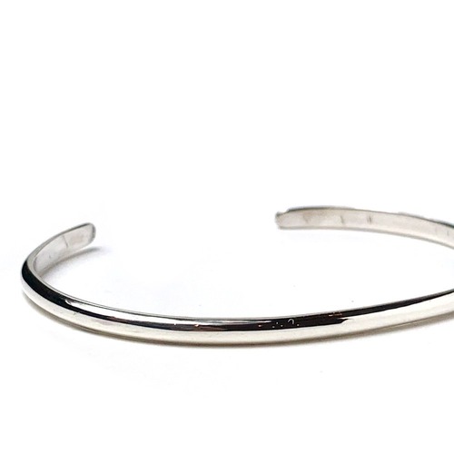 A plain type half moon silver bangle by Navajo female artist ERICKA NICOLAS BEGAY. All of her works use handmade ingot silver, giving off a presence that sets it apart from modern machine-produced Navajo jewelry, and because the plate making is also particular about handmade, there is no one that is the same. Each item is unique and unique. Inspired by the Fred Harvey style that has been around since the 1800s, her work is different from the heavy and profound Navajo jewelery, with a delicate and delicate atmosphere and a stylish yet handmade texture. This half moon type has a narrow silhouette with a rounded and gentle atmosphere. It has a mannish and delicate look that can be recommended not only for layering but also for women. There is no dullness due to oils and chemicals that are common in machine production, and you can feel the elegant and beautiful shine unique to handmade products, and the careful finish has the delicacy unique to women. We try to make the product photos as close to the actual colors as possible, but the colors may differ from the actual products depending on your monitor settings, room lighting, etc.