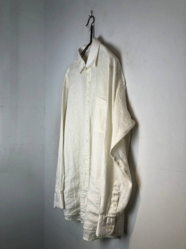 80s linen shirt Soft and light linen fabric feeling Moderately loose relaxing silhouette Off-white color that can be assembled with any outfit All linen shirt that can be used until summer
