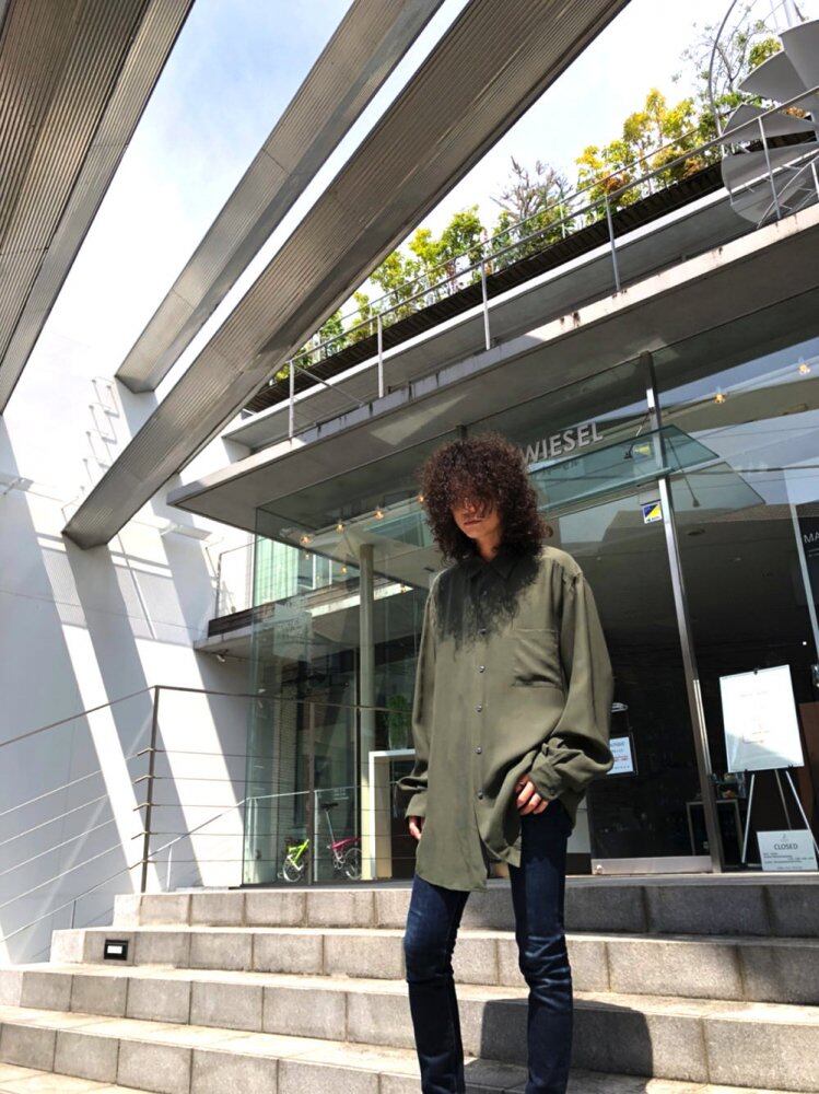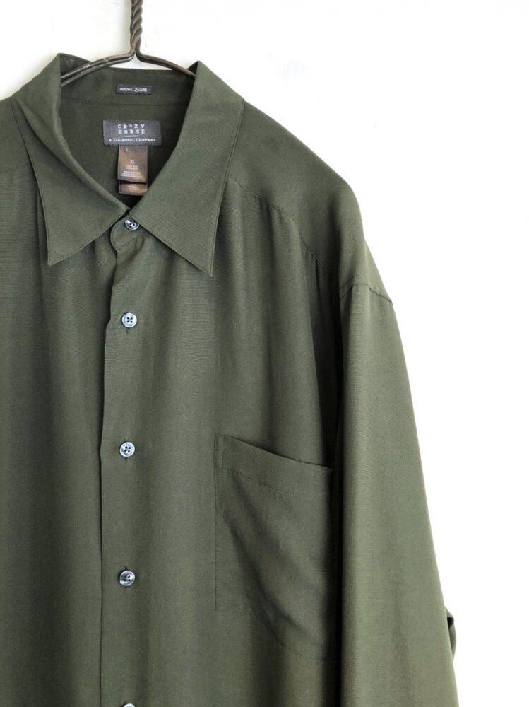 90s dead stock silk shirt Soft, soft, smooth and light silks unique fabric feeling Loose and loose over-silhouette Good smoky olive color