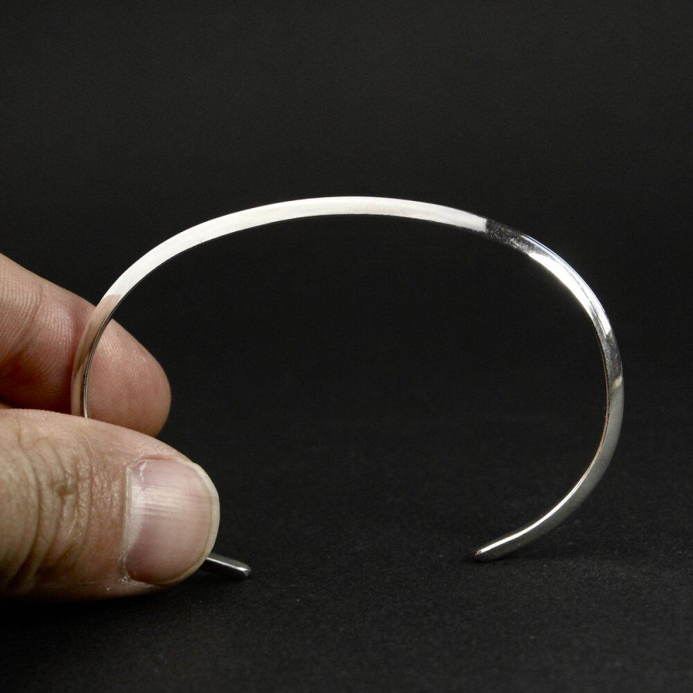 A work by Navajo female artist ERICKA NICOLAS BEGAY. All of her works use handmade ingot silver, giving off a presence that sets it apart from modern machine-produced Navajo jewelry, and because the plate making is also particular about handmade, there is no one that is the same. Each item is unique and unique. Inspired by the Fred Harvey style that has been around since the 1800s, her work is different from the heavy and profound Navajo jewelery, with a delicate and delicate atmosphere and a stylish yet handmade texture. This triangle type features a narrow silhouette and a triangular shape that shows a solid feeling. There is no dullness due to oils and chemicals that are common in machine production, and the elegant and beautiful shine unique to handmade, the careful finish feels the delicacy unique to women, and it is a mannish and delicate expression that can be recommended for women as well as layering. Since it has a soft body, you can easily adjust the size (squeeze). Since it is handmade, there are scratches etc., please check the photo and understand the characteristics of vintage before purchasing.