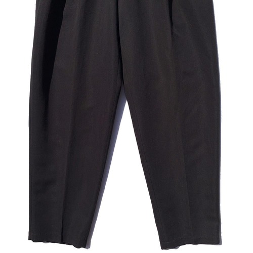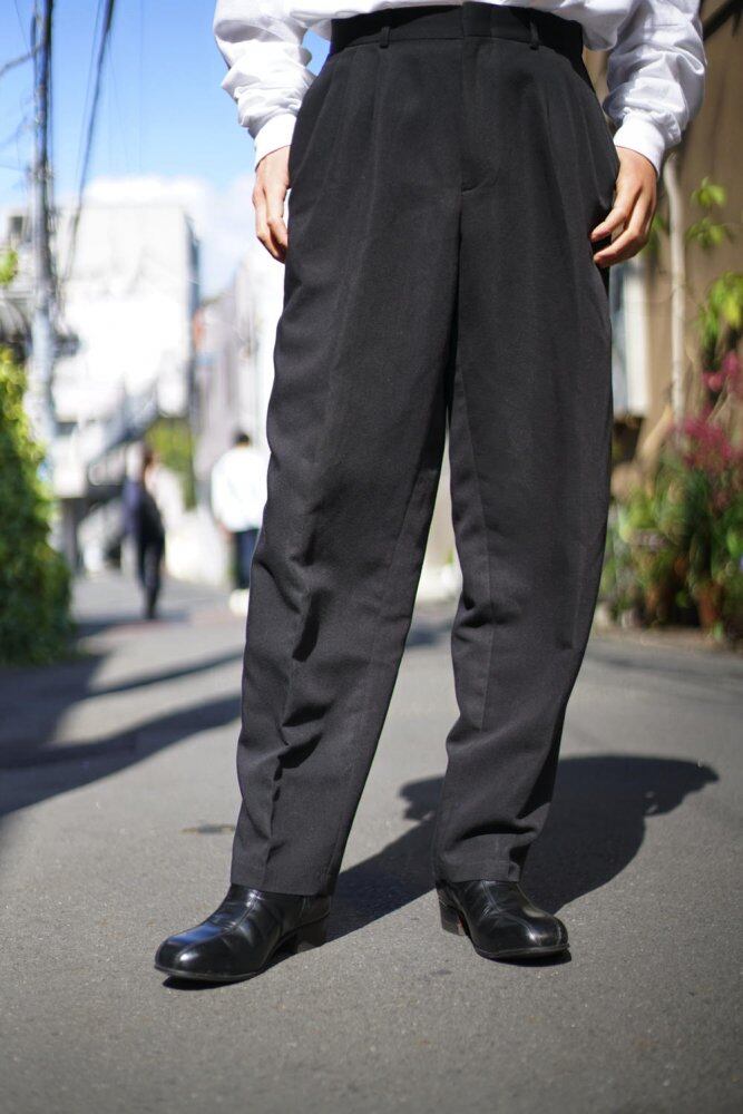 It has a mature silhouette with 3 tuck and a taper toward the hem while having plenty of space around the waist.