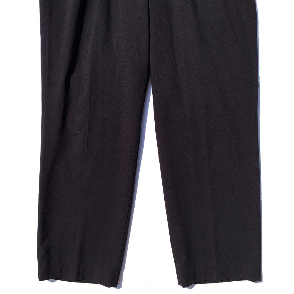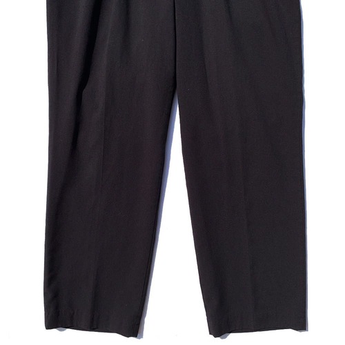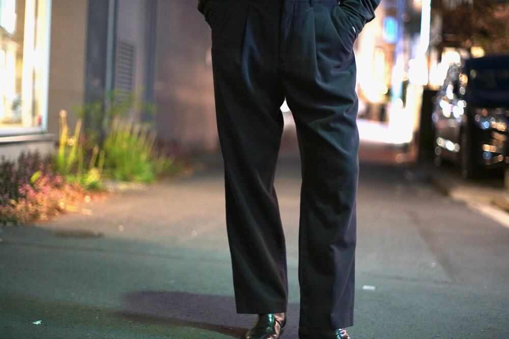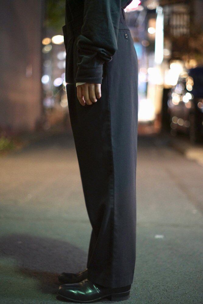 It has a mature silhouette with 2 tuck and a taper toward the hem while having a space around the waist.