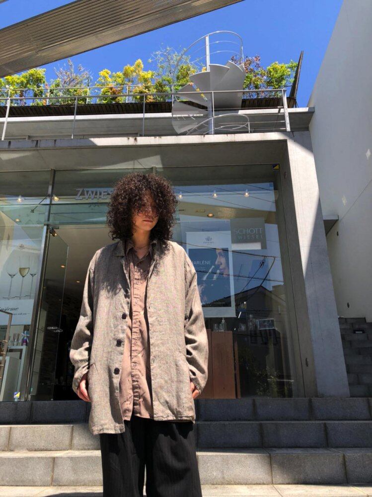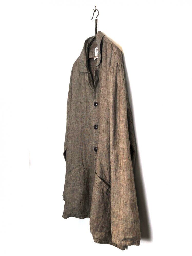 80s linen jacket A deep shade of beige mixed with light blue and orange, and a luxurious caslinep woven fabric. The soft, silky linen feels comfortable. The loose and voluminous over-silhouette is not only for spring. Shirt jacket that can be worn even in summer