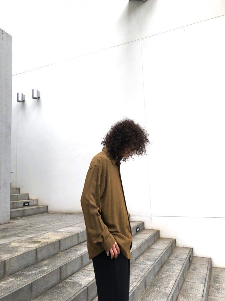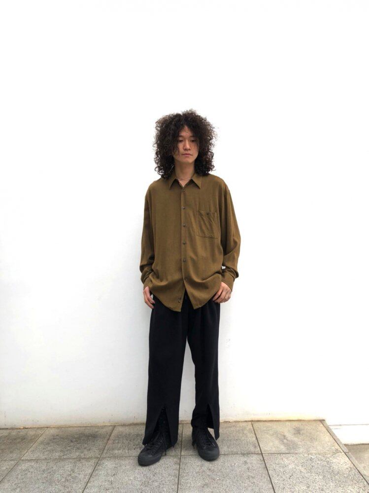 90s rayon shirt Soft, smooth and light rayon fabric with a feeling of falling, moderately loose and modern over-silhouette Khaki gold color with astringency