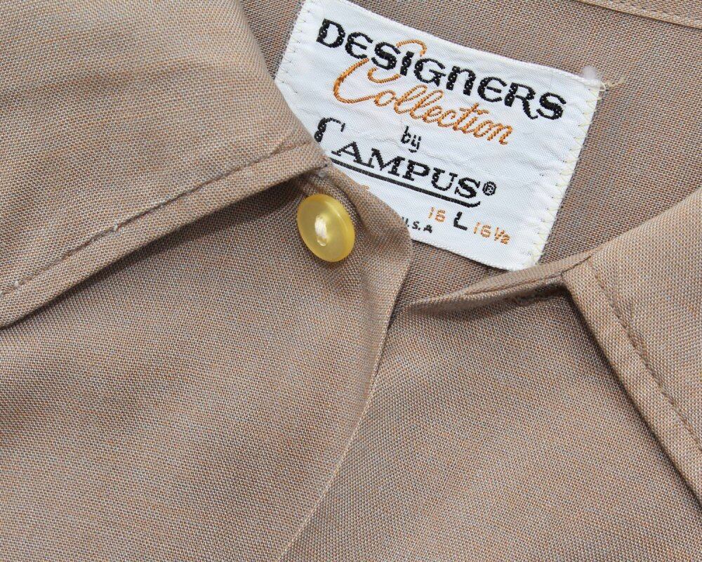 Around the 1960s, it is an open color rayon shirt. Unique vintage coloring with blue-gray thread mixed with charcoal beige. The rayon satin fabric, which has been precious in recent years, is characterized by a comfortable, fluffy and thick drape. L size and relaxed silhouette. Damage to the pocket edge, a thin stain on the front body, and other subjectively good conditions. Since it is an old product, it rarely deteriorates over time. Please check the photo and purchase after acknowledging the characteristics of vintage.