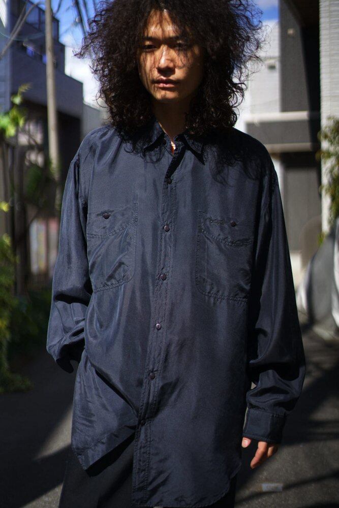 A big silhouette silk shirt from the 1980s with an elegant shiny luster of silk fabric.